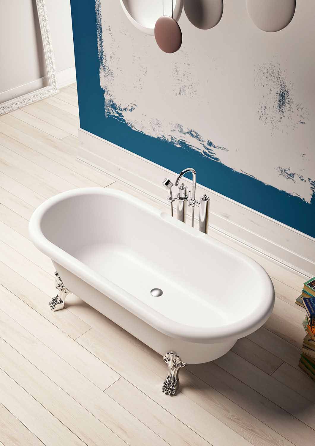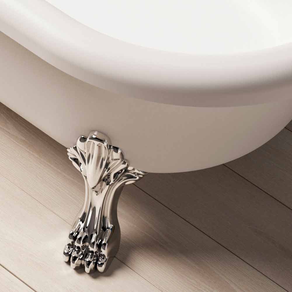 strikt men elegant design samtidigt . Det här badkarets särdrag är de kromade fötterna: det står på lejonben som definierar och understryker personligheten.