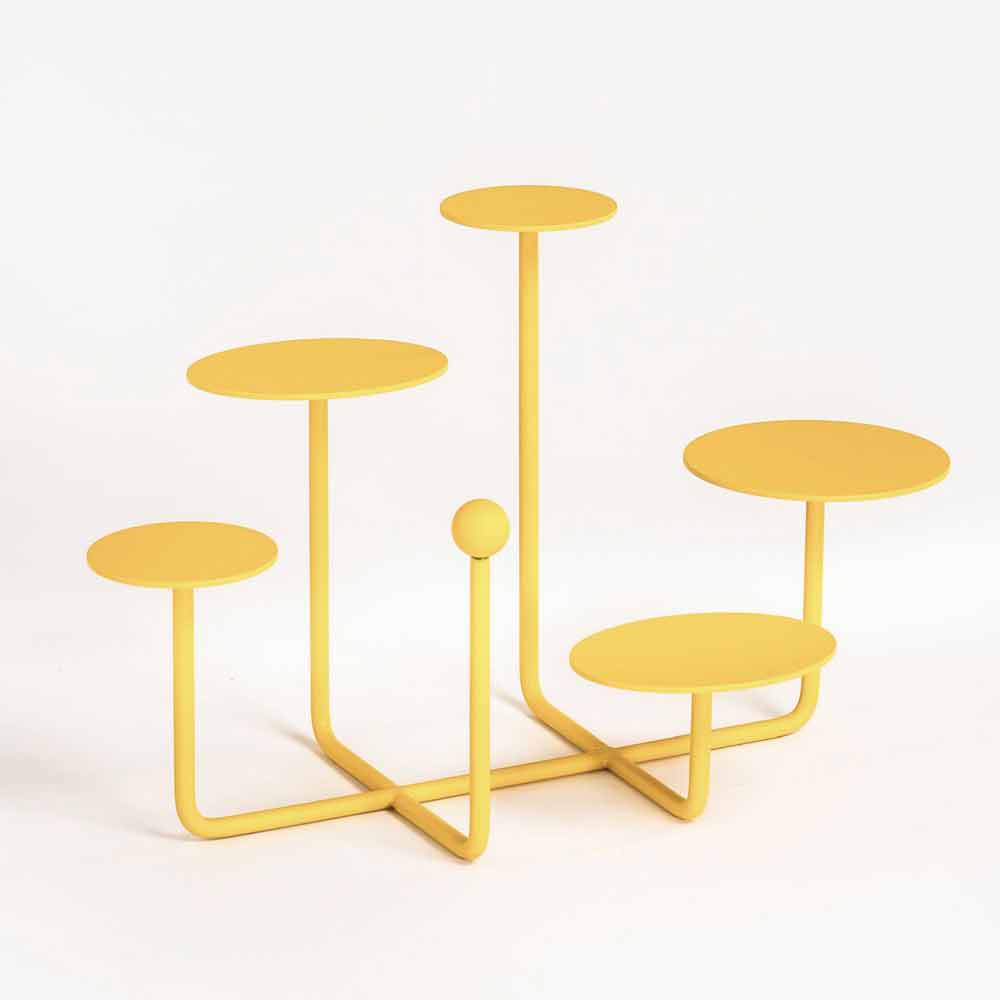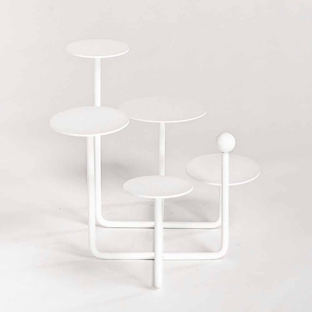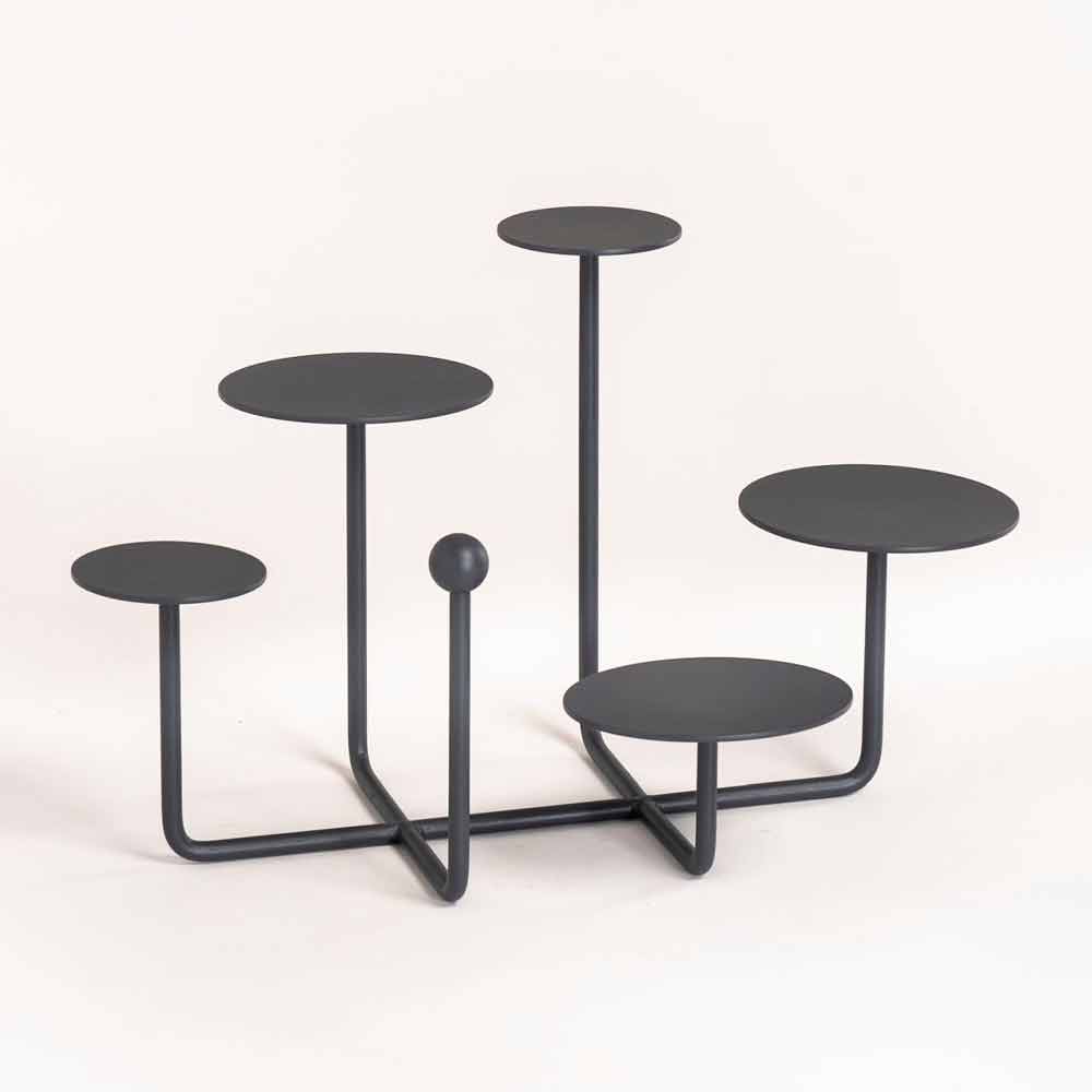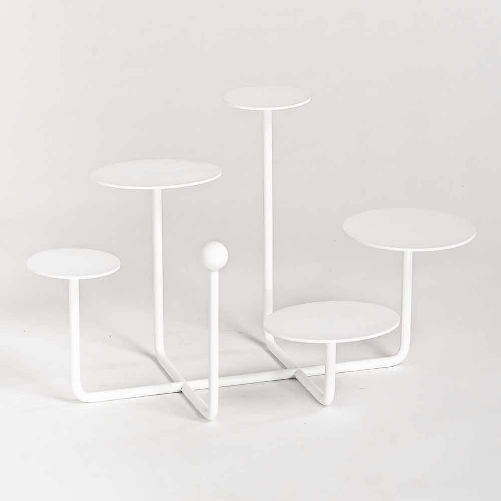 Denna backsplash är helt tillverkad i Italien i RAL-målat stål som ger produkten en modern och raffinerad design och dess struktur består av 5 praktiska runda toppar placerade i olika höjder perfekt för små bakverk eller fingermat. Tack vare sin form och lilla storlek är den här produkten idealisk för att placeras på bordet som ett verkligt designelement som hjälper till att göra varje kulinarisk skapelse till ett verkligt konstverk.