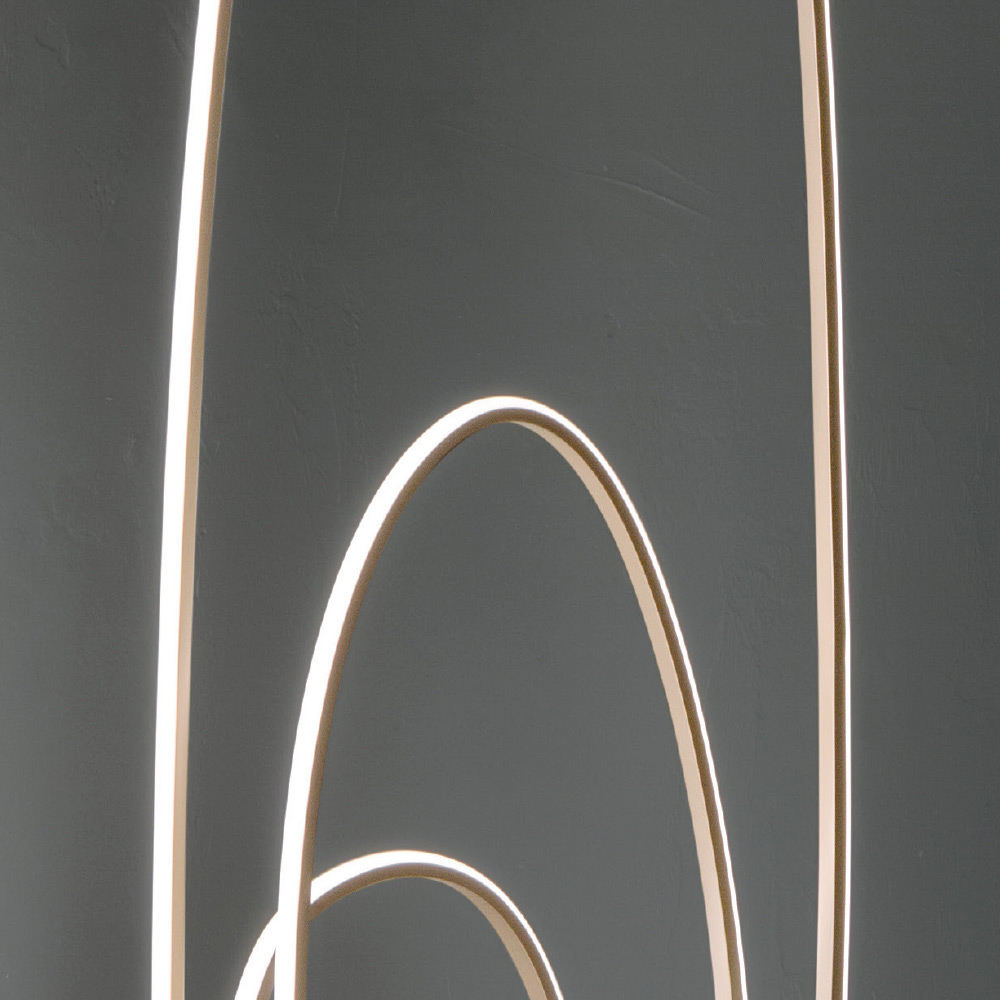 originell och raffinerad touch . Dess struktur utvecklas i en vertikal virvel som består av en kontinuerlig linje som återskapar elliptiska cirklar som ger liv åt ett särskilt