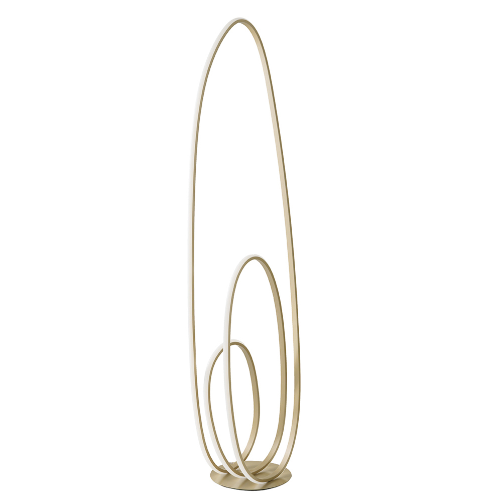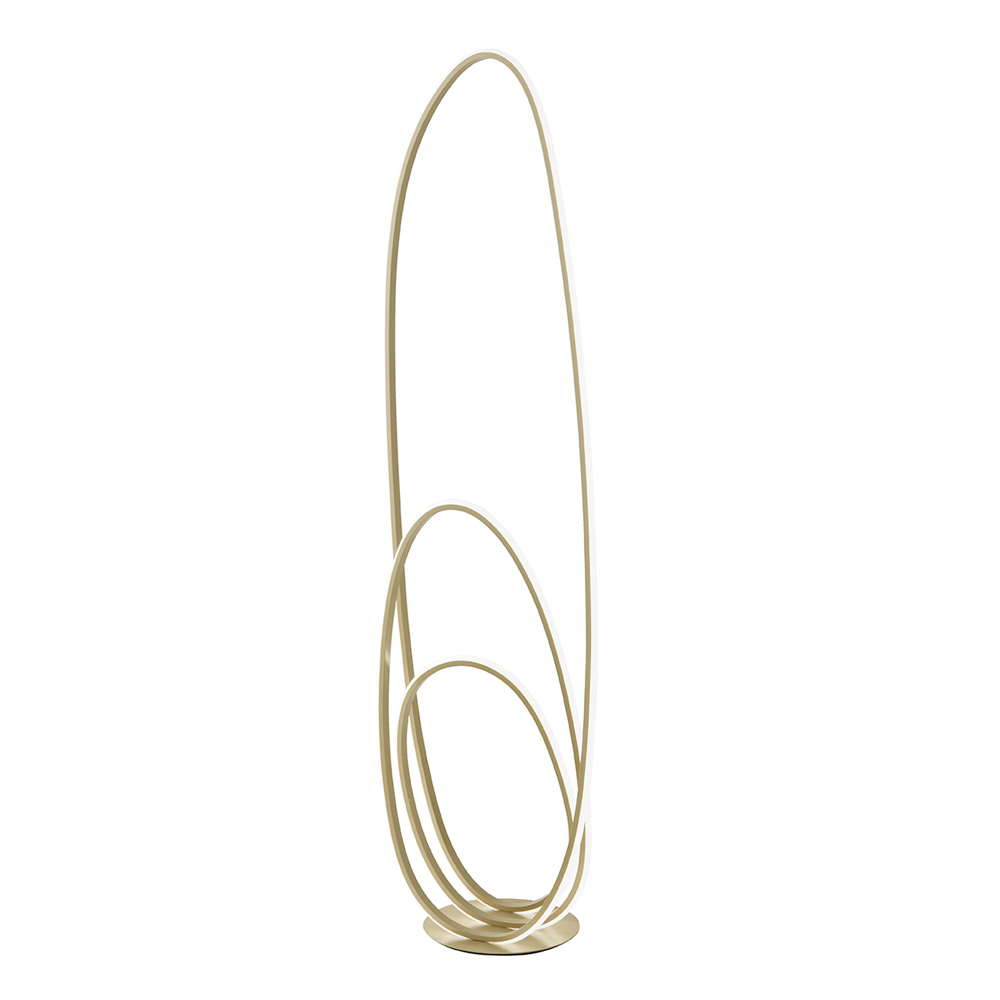 Guldfärgad metallgolvlampa komplett med LED-ljus.