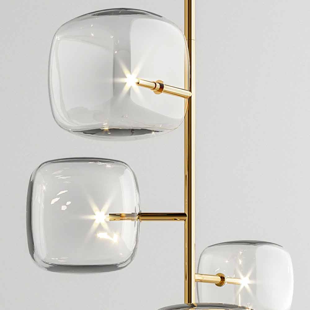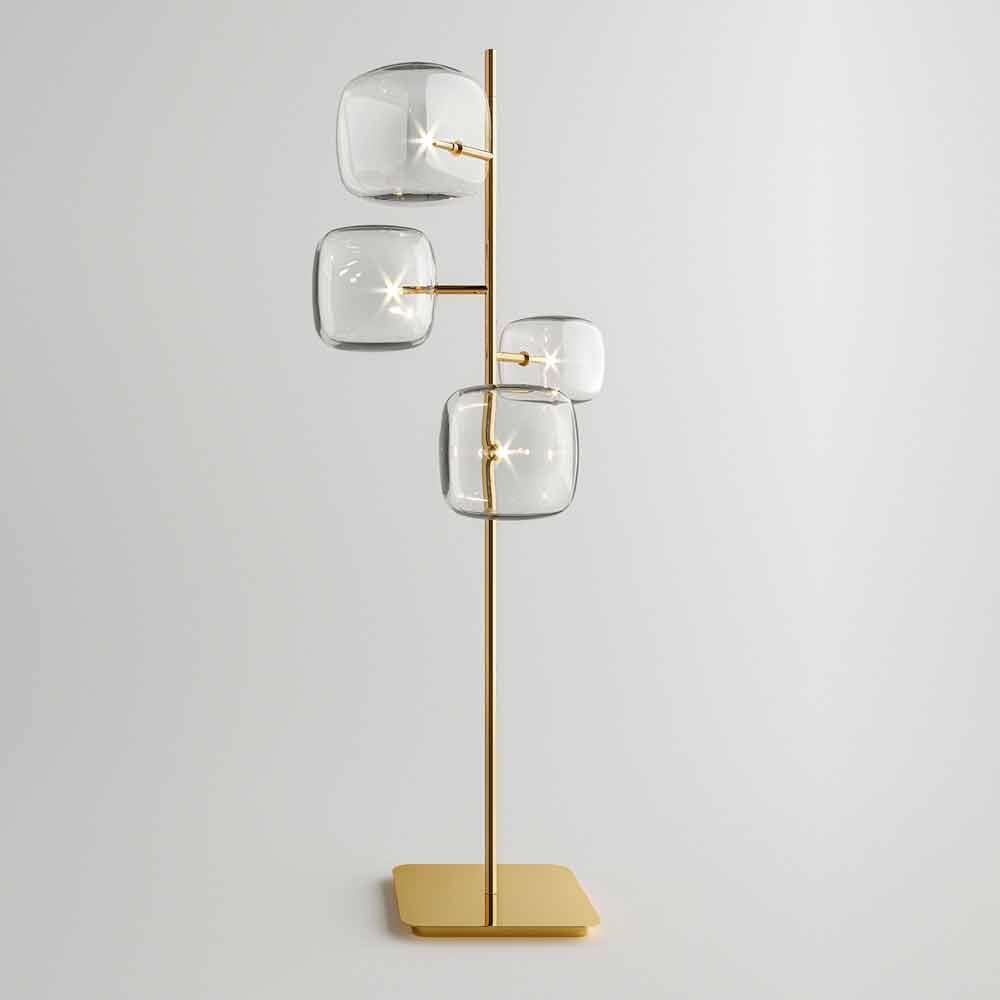 Design golvlampa i polerad metall med rundade glaskuber Tillverkad i Italien.