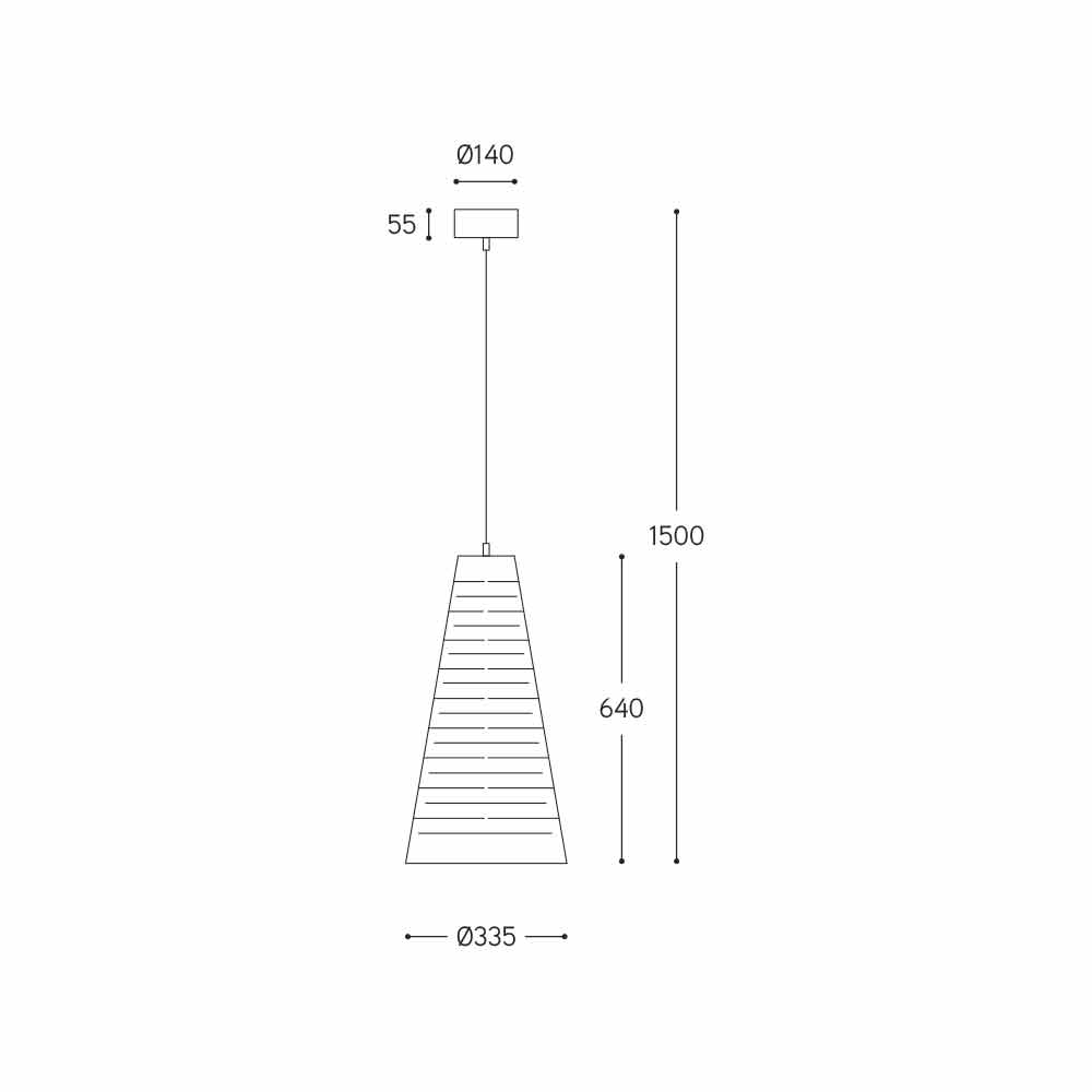 | Lampa åtgärder | Diameter 335 x H 640 mm; H totalt med kabel och rosett 1500 mm |
