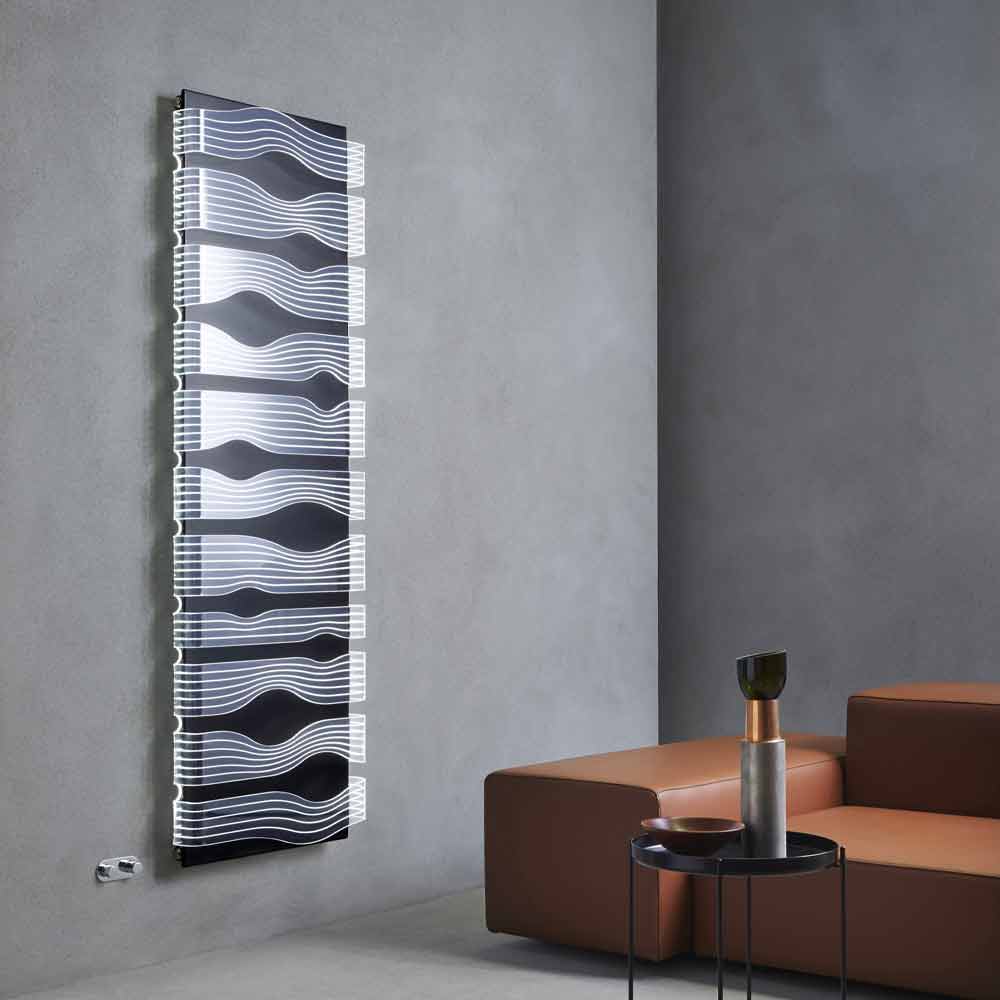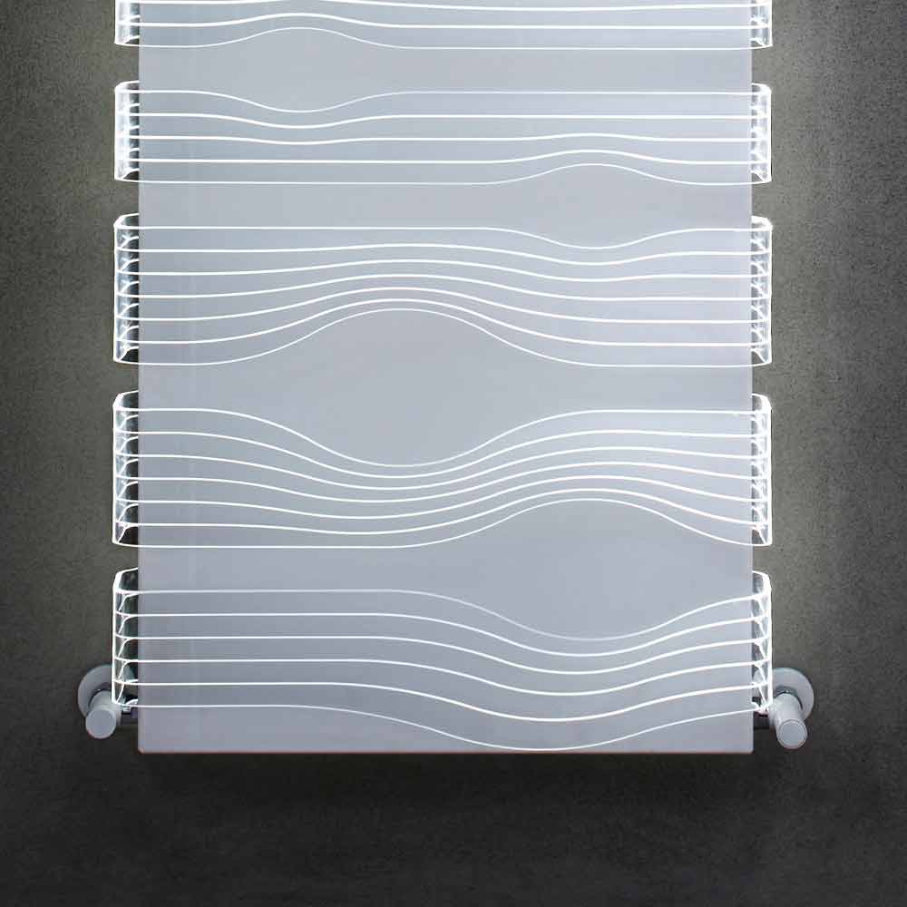 Modern hydraulisk vertikal designradiator med LED-lampor, hög kvalitet tillverkad i Italien.