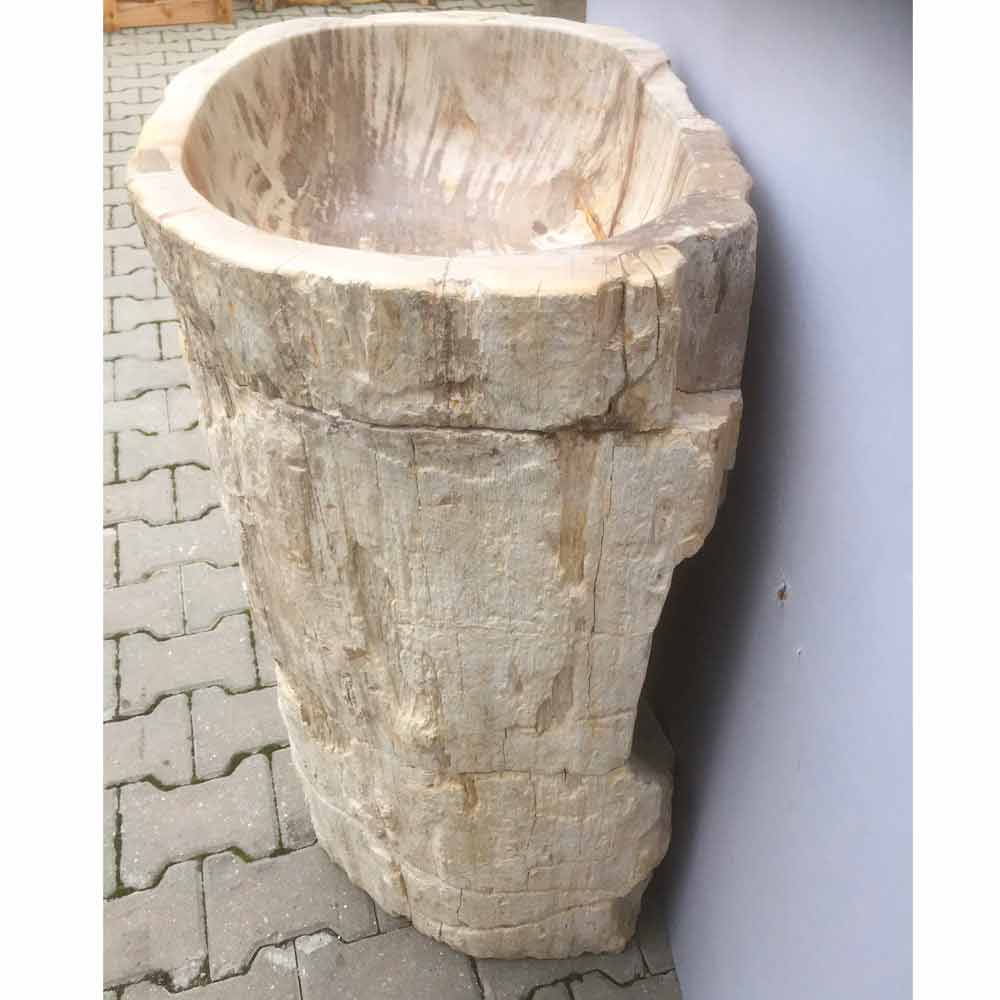 Piedestal diskbänk i förstenat trä, handgjord.