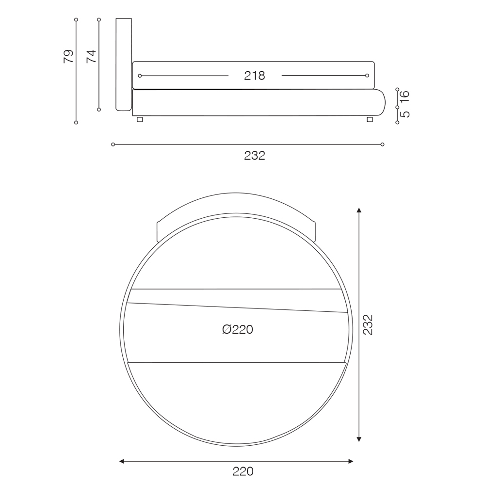 Mått : L 220 x D 232 x H 79 cm