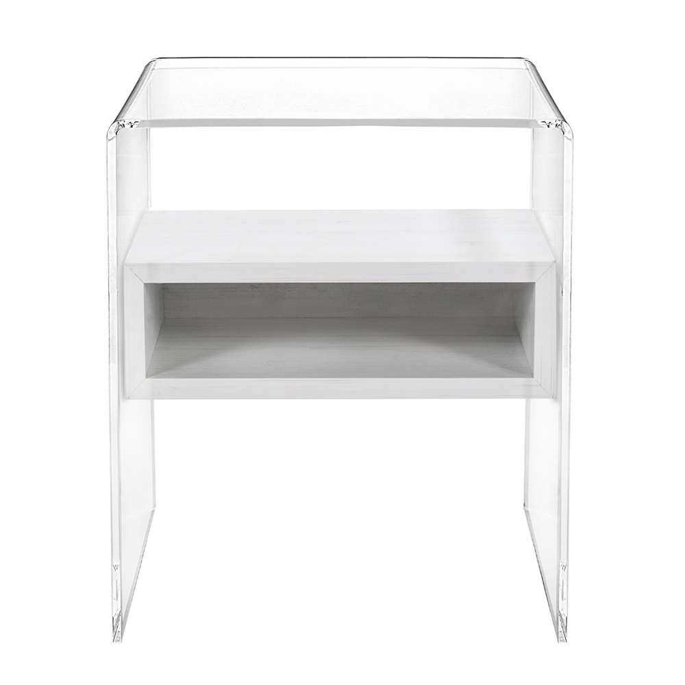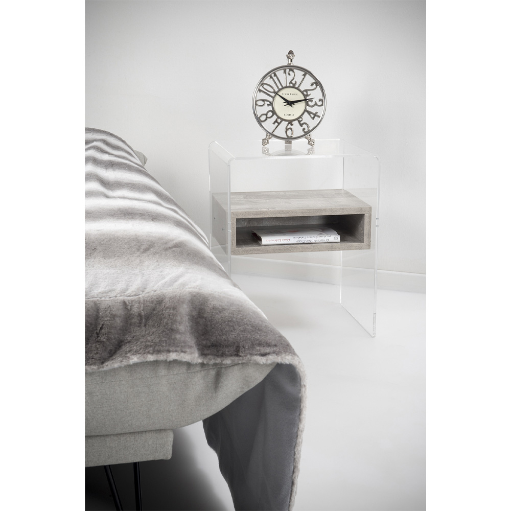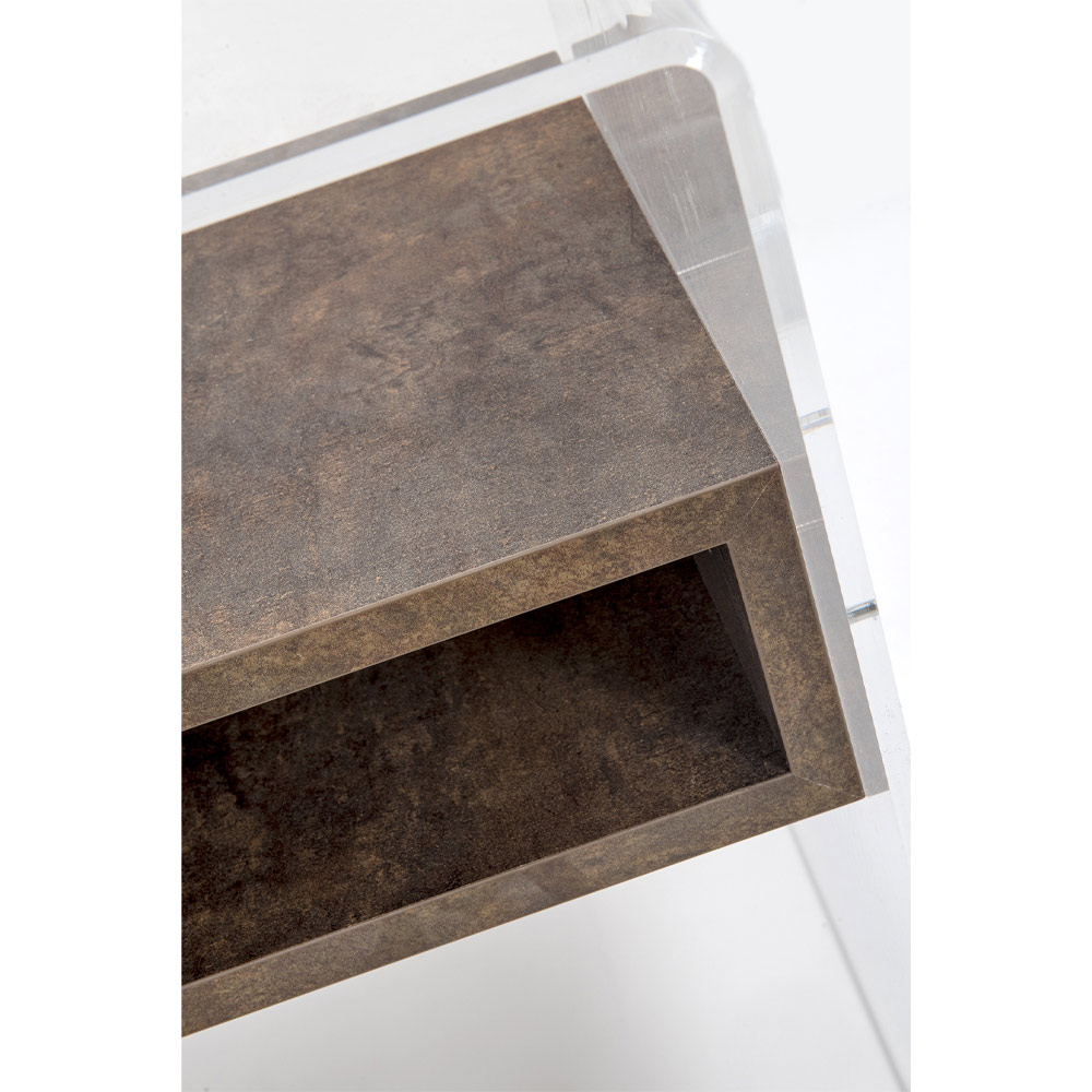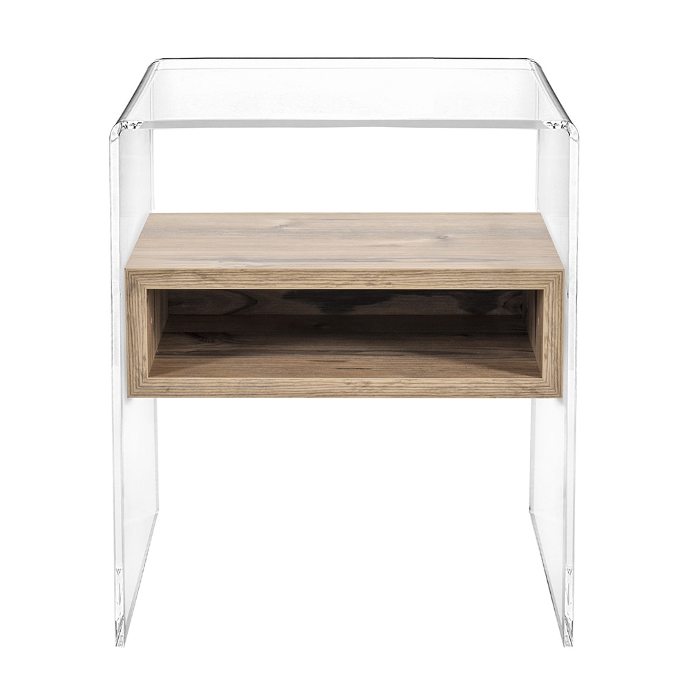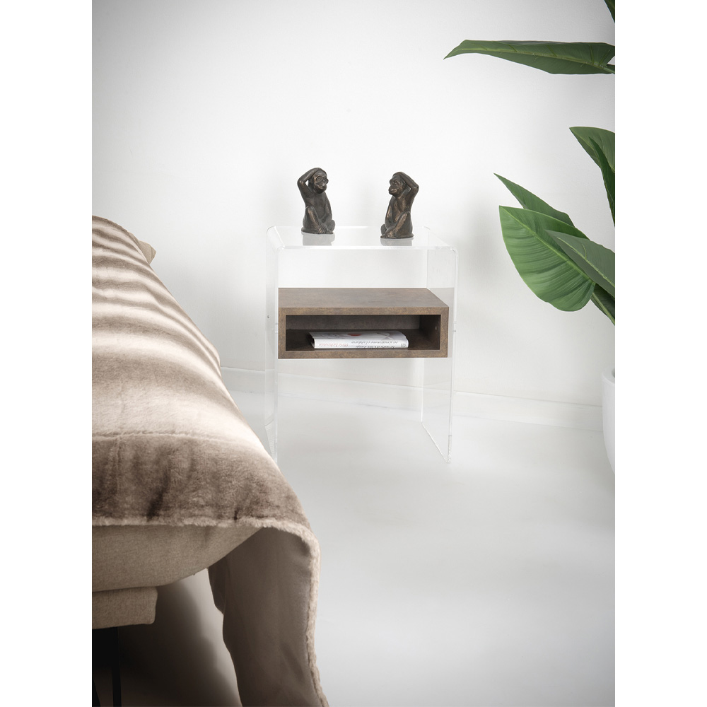 Sängbord eller soffbord i transparent plexiglas och träessenser tillverkade i Italien.