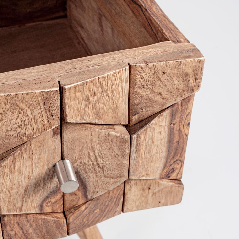 Denna designbyrå för vardagsrummet har en sheesham-trästruktur , med baksida och botten av lådorna i plywood.
