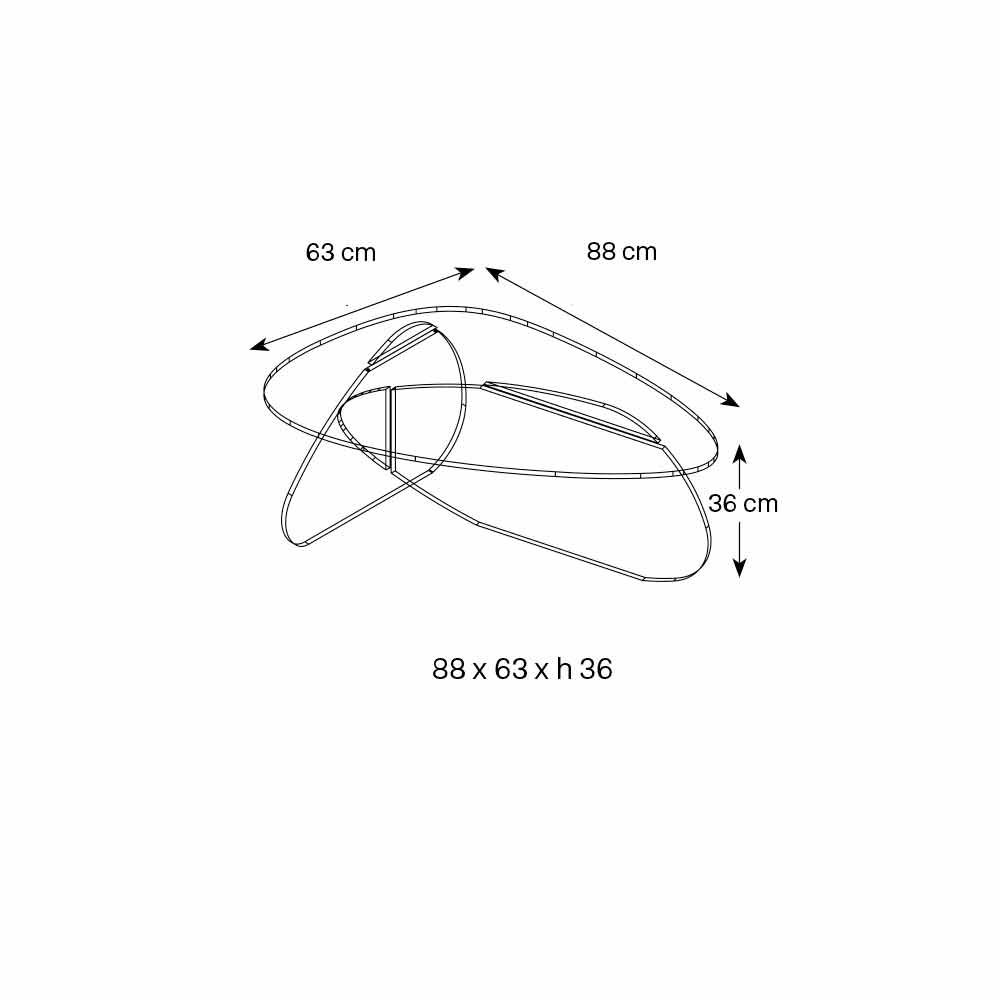 transparenta, rökt och etsade glashyllor (12 mm tjocka) som verkar korsa varandra och bilda bordets volym.