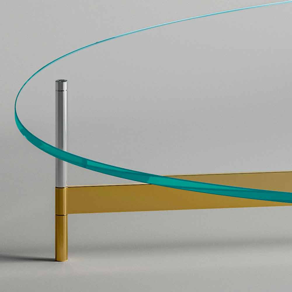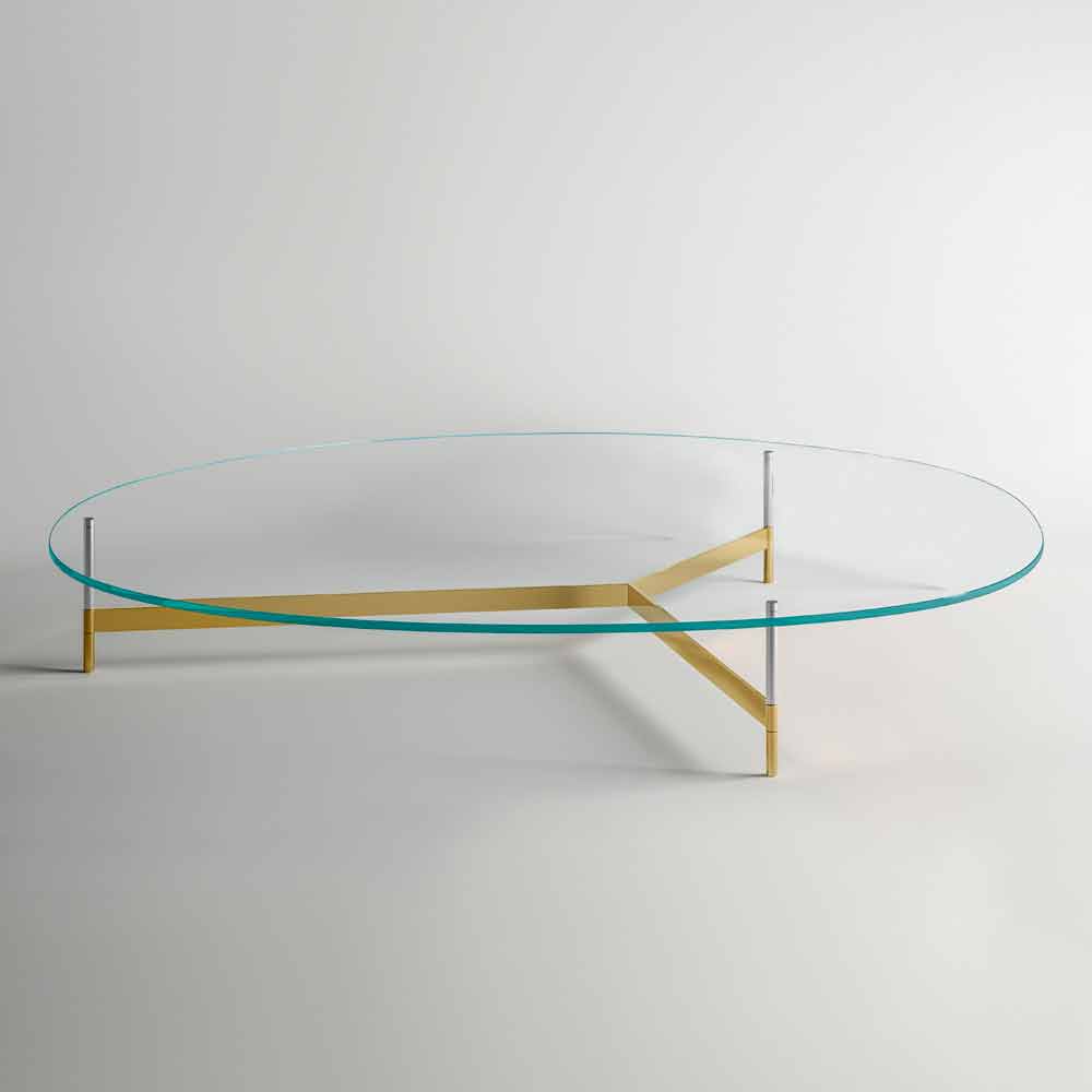Design soffbord med glasskiva och metallbas Tillverkad i Italien.