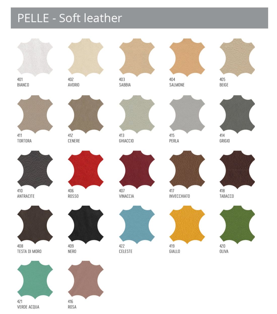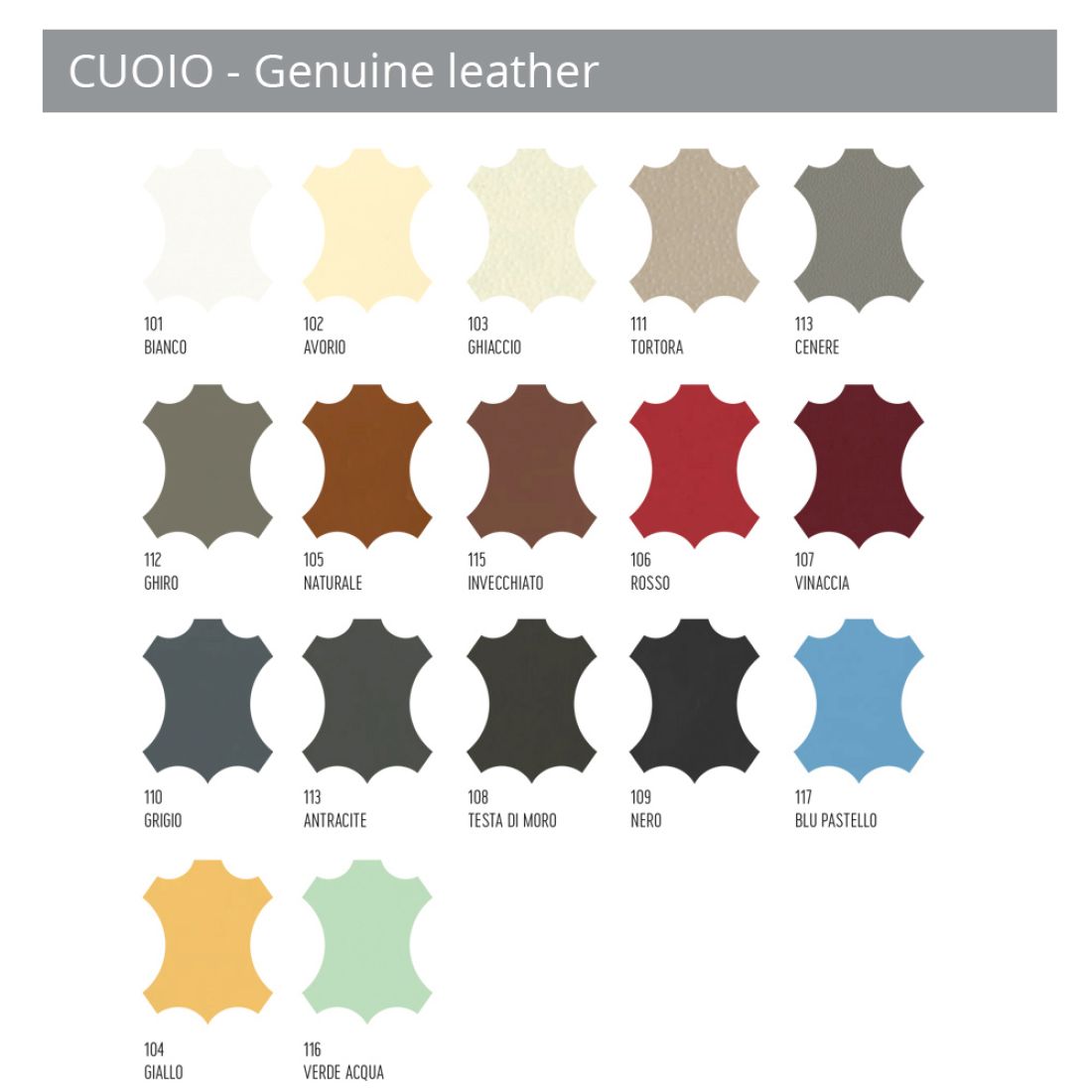 Fullkornsläder : vegetabiliskt garvat fullkornsläder är ett naturligt behandlat material. Varje hud har sina egna egenskaper, typiska åldrande tecken som vener och skuggning. Skillnaderna i spannmål, struktur och färg kan framhävas beroende på typen av läder. Detta material är känsligt för direkt ljus, värme och fuktighet.