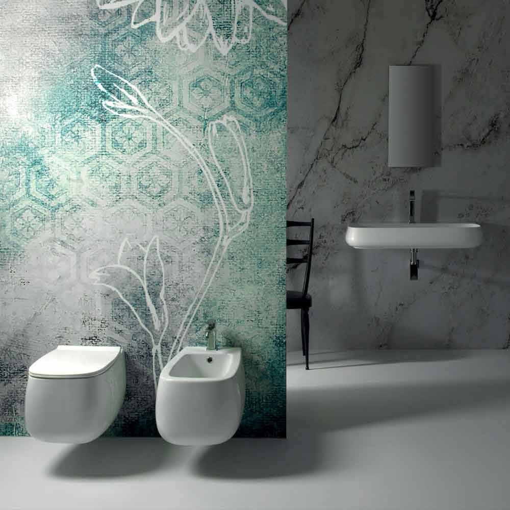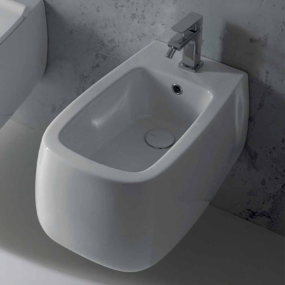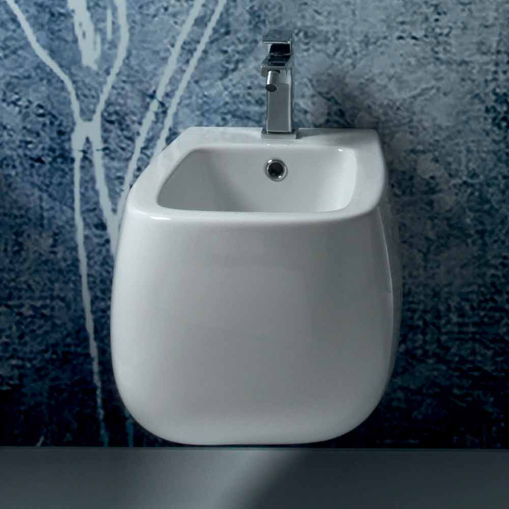 Modern vägghängd bidé i vit keramik tillverkad i Italien Gaiola
