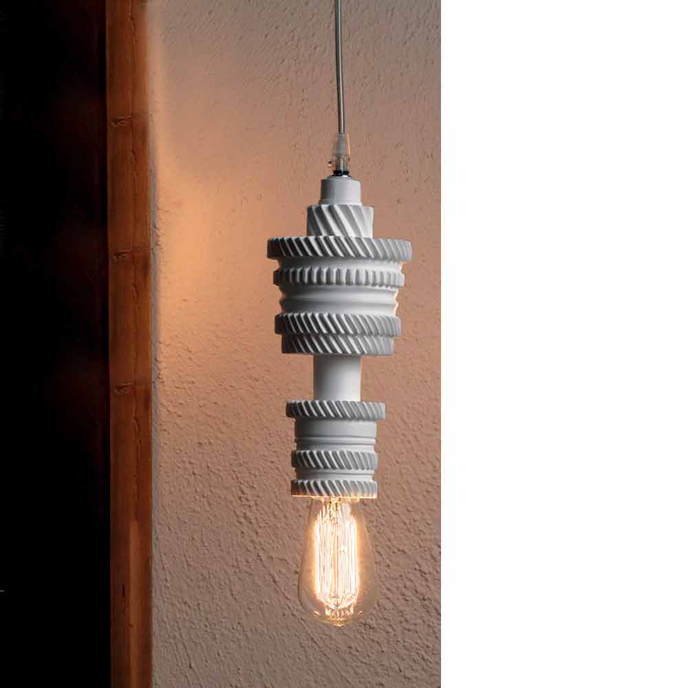 Lampan är gjord av keramik i tre ytbehandlingar, som ett material som representerar ursprunget, smidigheten, skapandet och som leder direkt till vår kulturs ursprung.