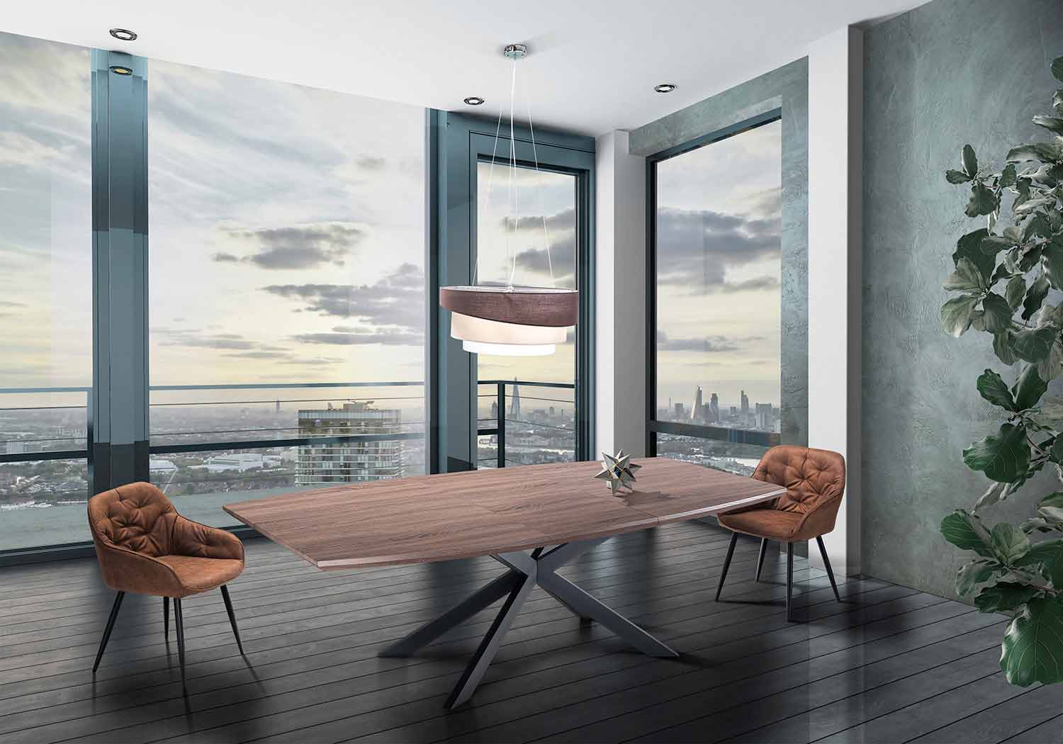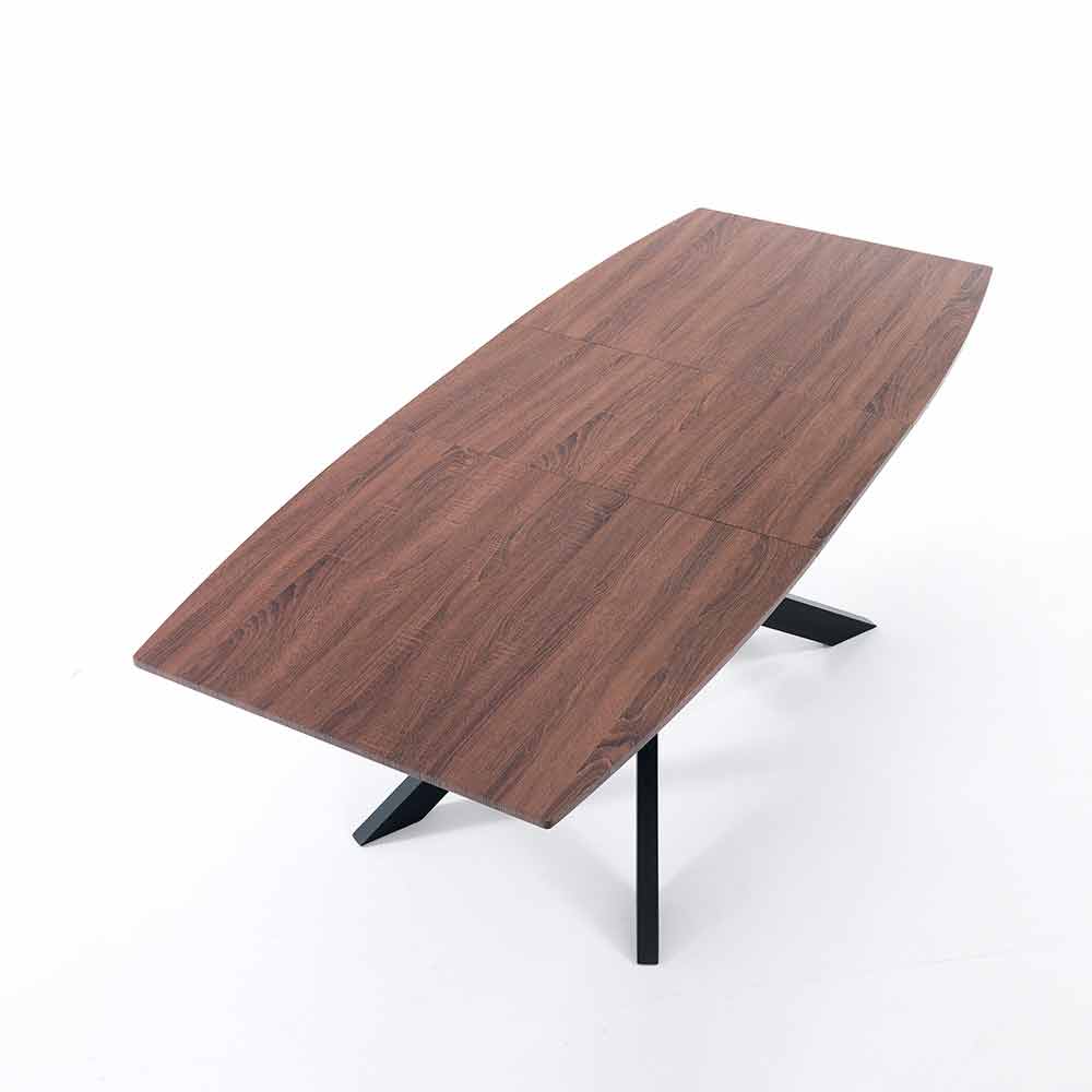 Torquato är ett briljant utdragbart matbord realiserat med en Mdf-topp (tjocklek 4 cm) täckt med 3D-papper mörk valnötfinish och matt svartmålade metallben.