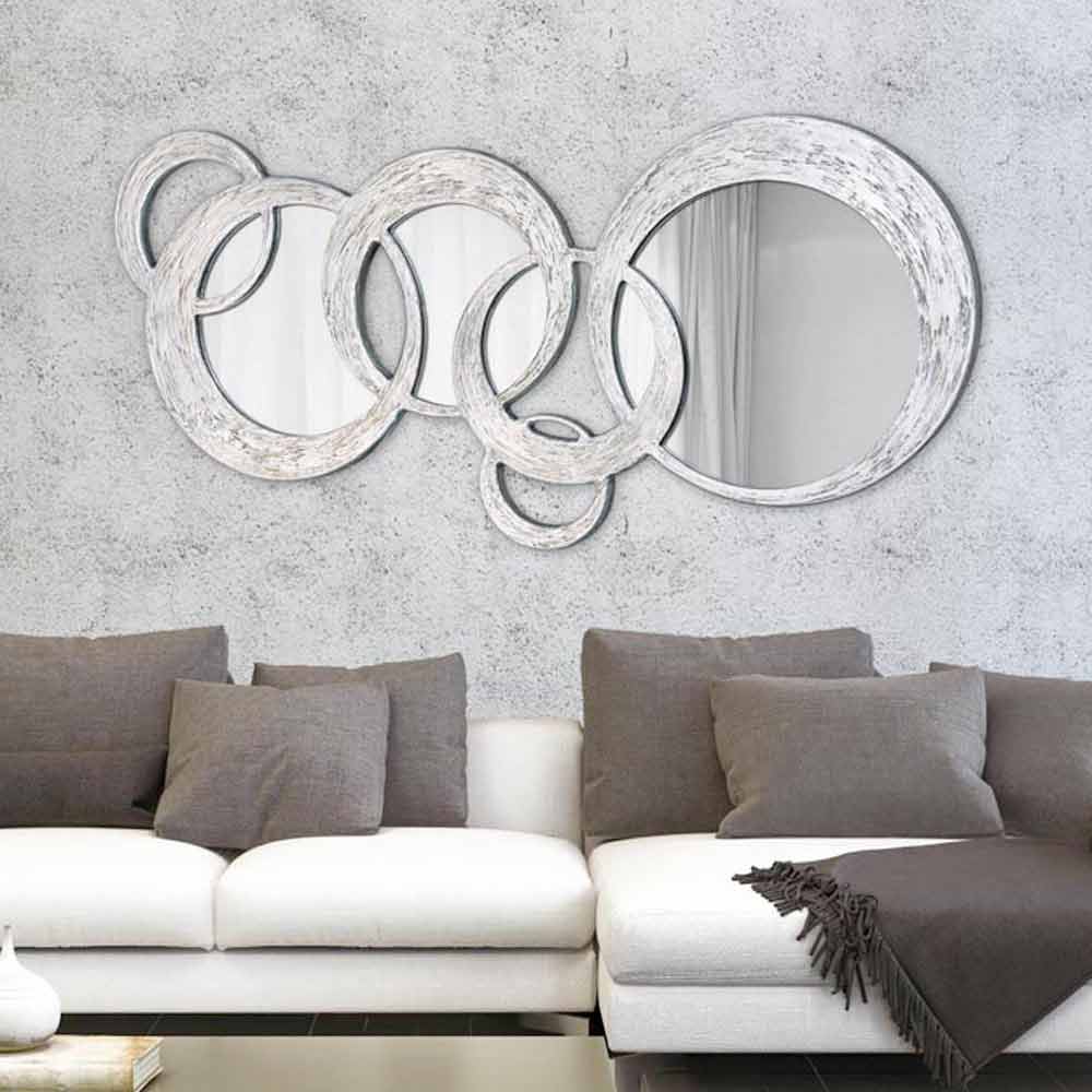 MDF spegel med formad struktur med tre speglar, hand dekorerad i silverblad på präglat materialarbete, blank yta