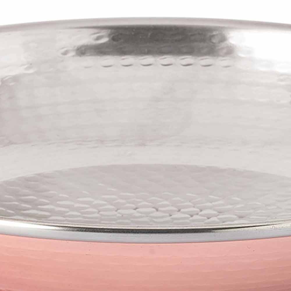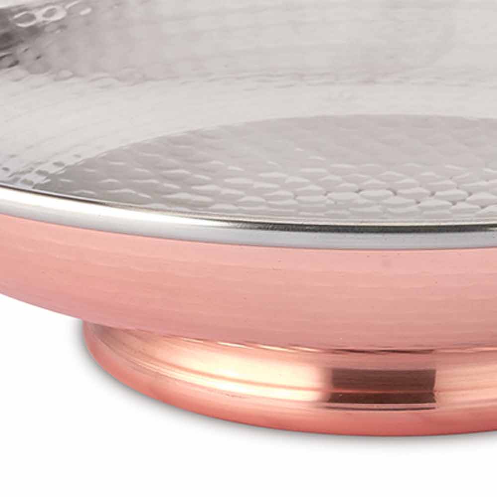 Havs- och landfruktskål med rund design i polerad hamrad kopparhantverk tillverkad i Italien.