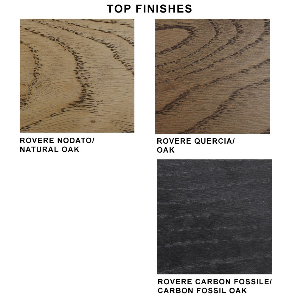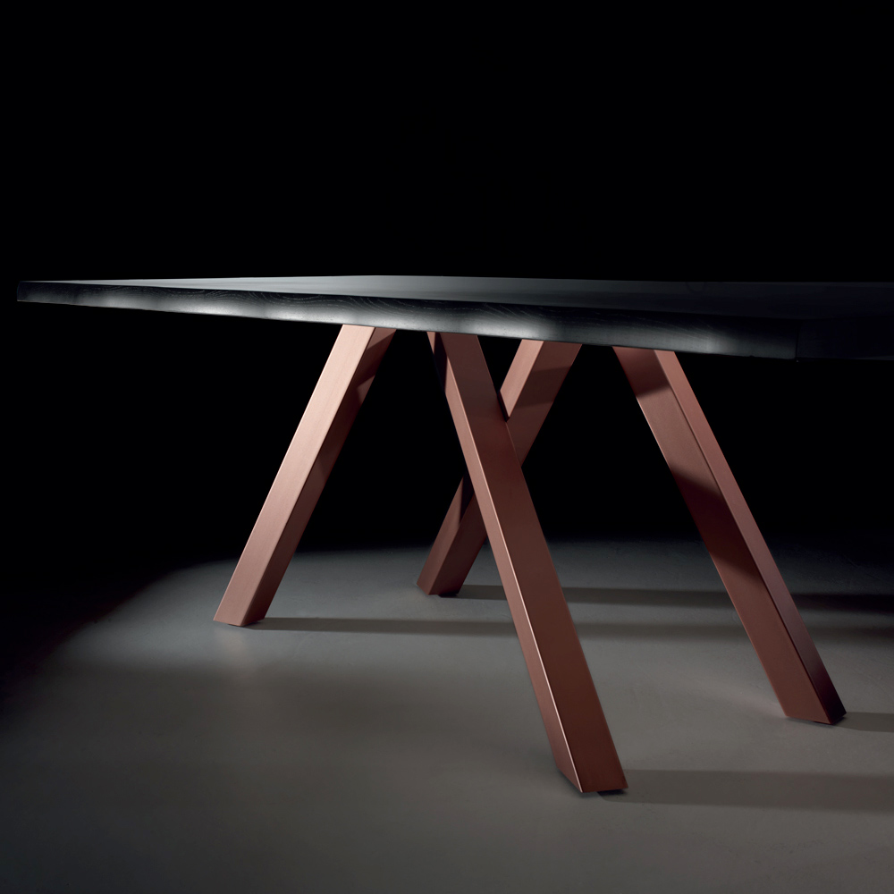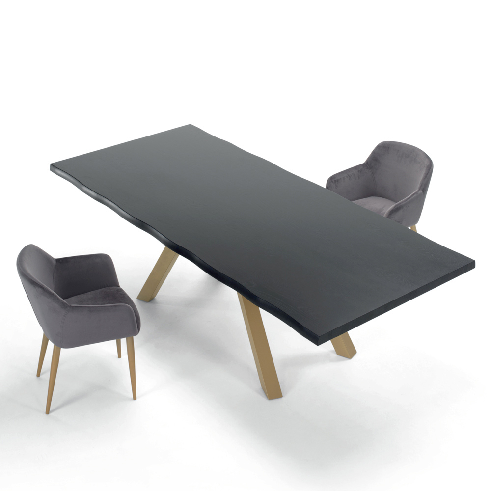 Modernt köksbord med skiva i fanerat trä och underrede i guld, roséguld eller grafitstål tillverkat i Italien.