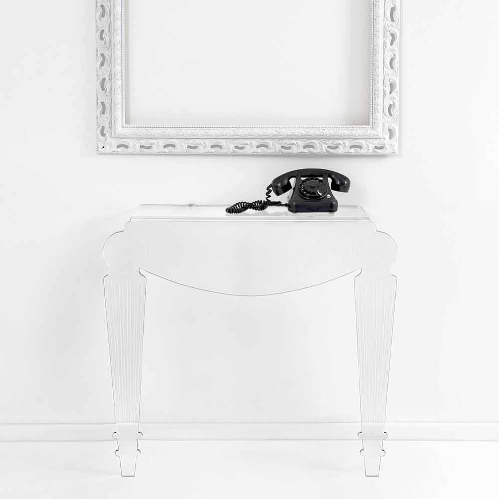 Designkonsol i transparent plexiglas tillverkad i Italien, Afrika