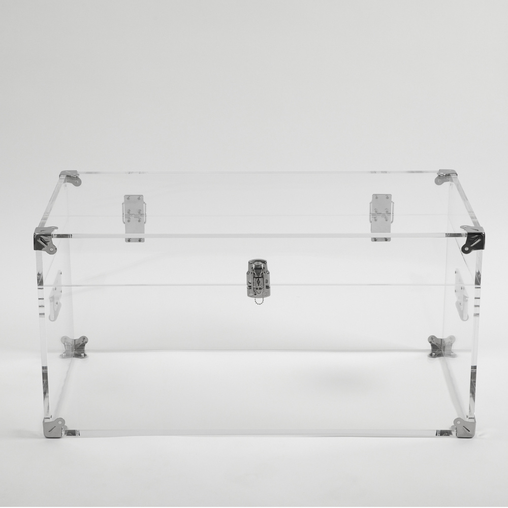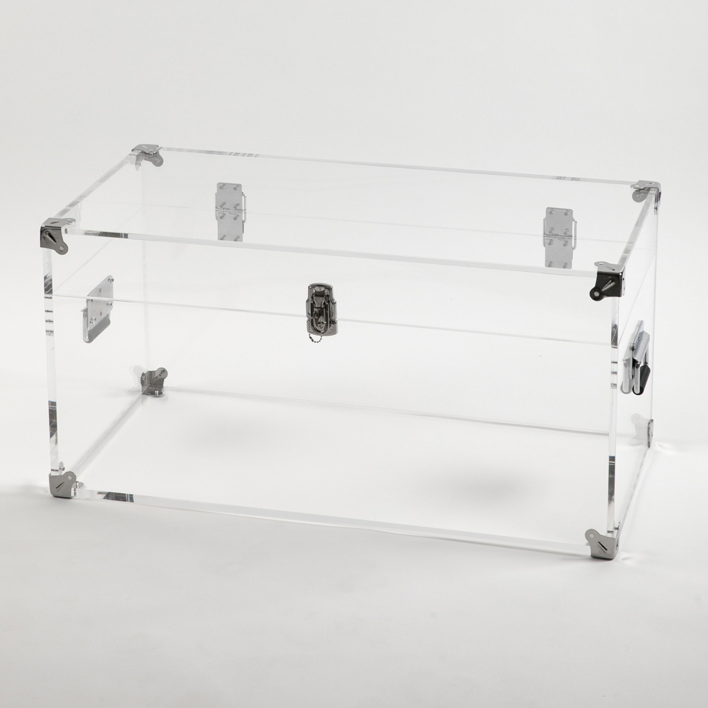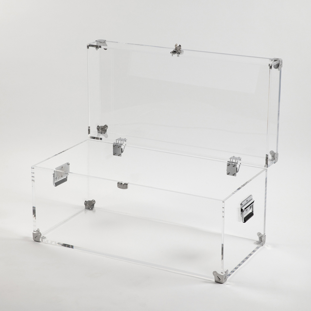 Koffert i genomskinlig akrylkristall och kromad yta tillverkad i Italien.