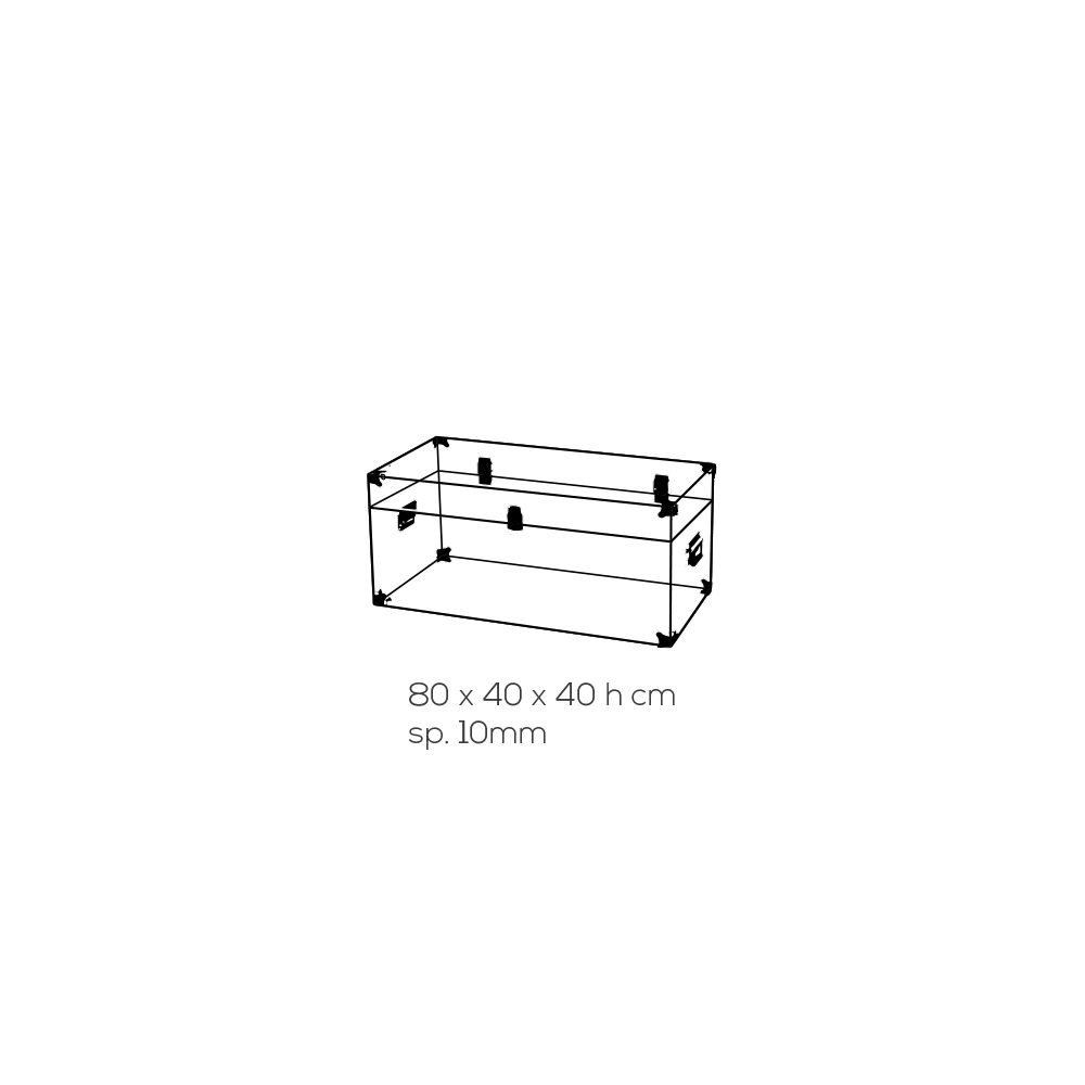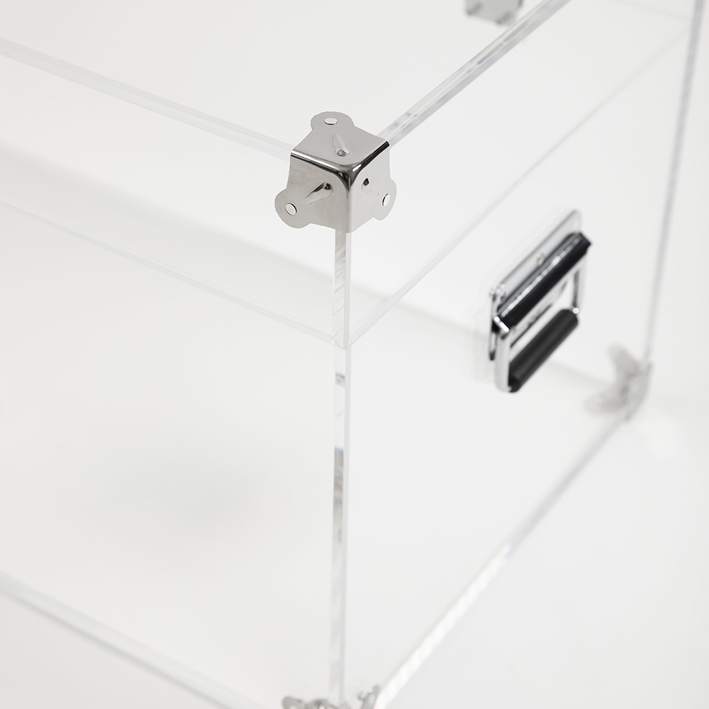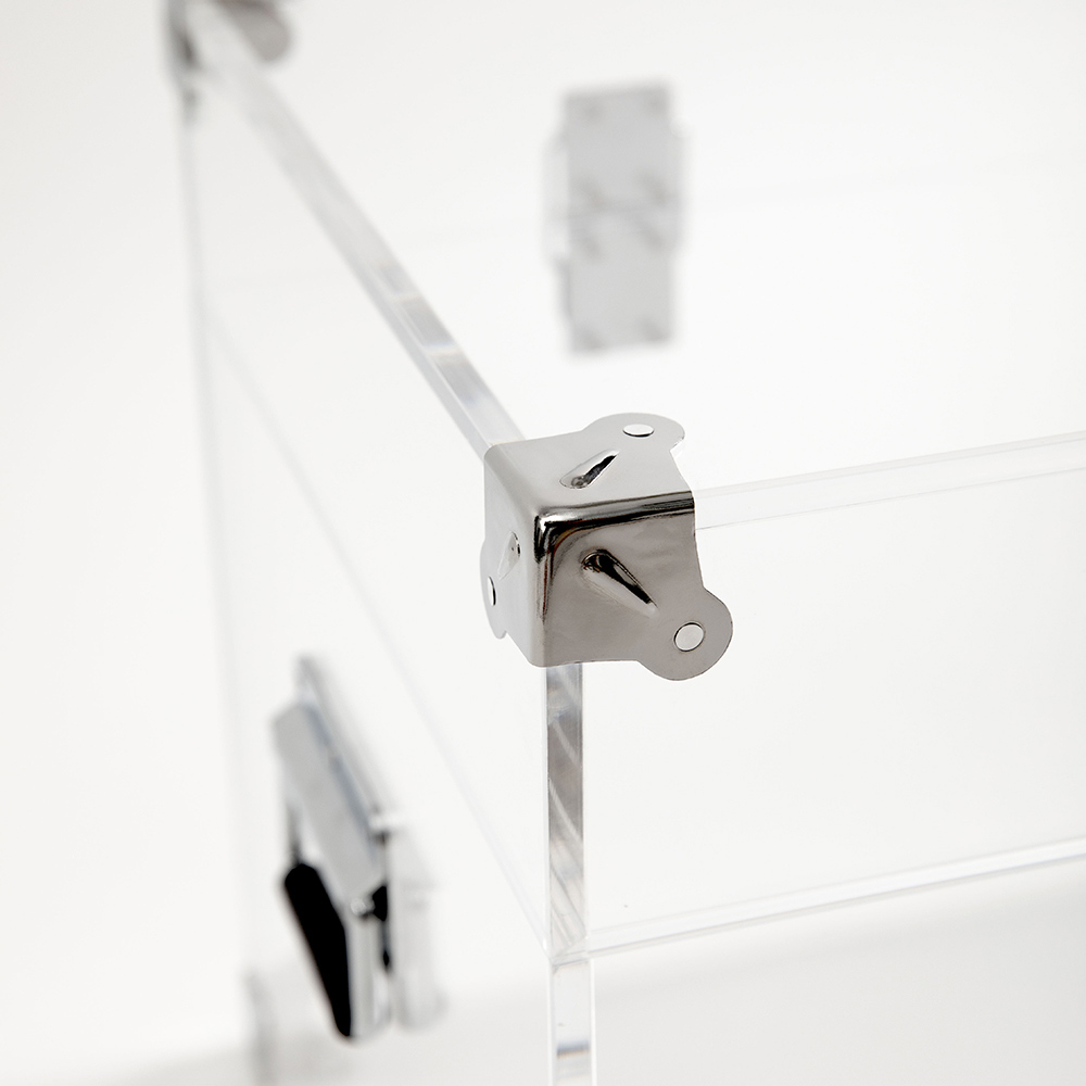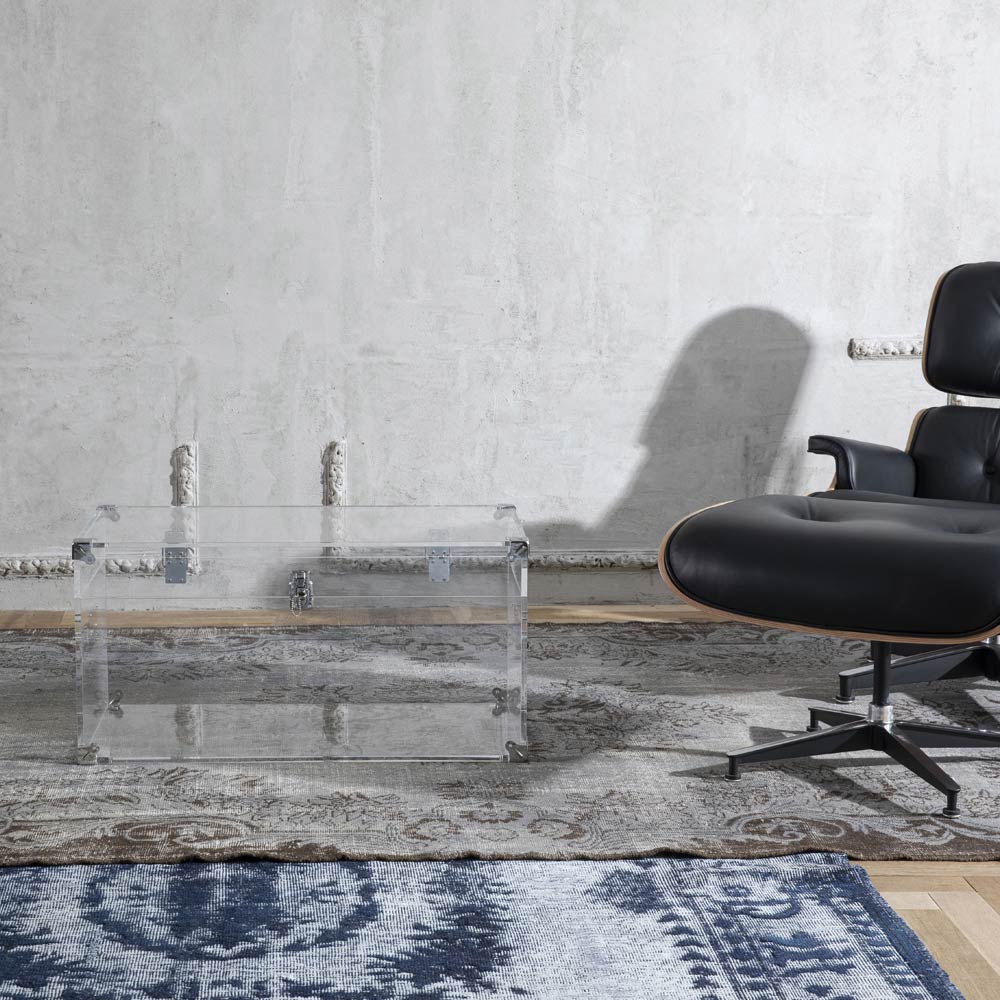 Koffert i genomskinlig akrylkristall och kromad yta tillverkad i Italien.