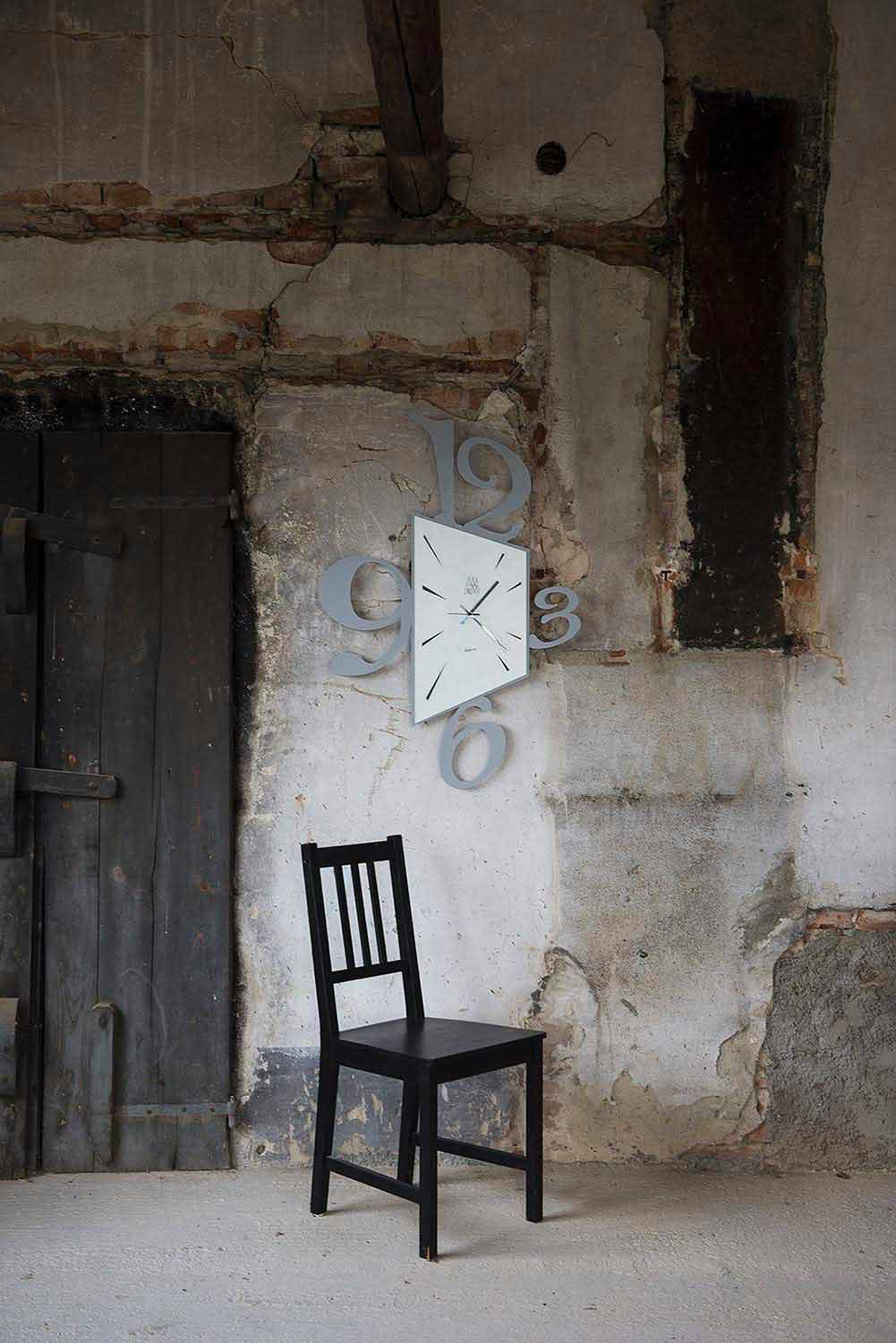 väggklocka som beskrivs med enkla och originella linjer, perfekt för att anpassas till alla typer av möbler.