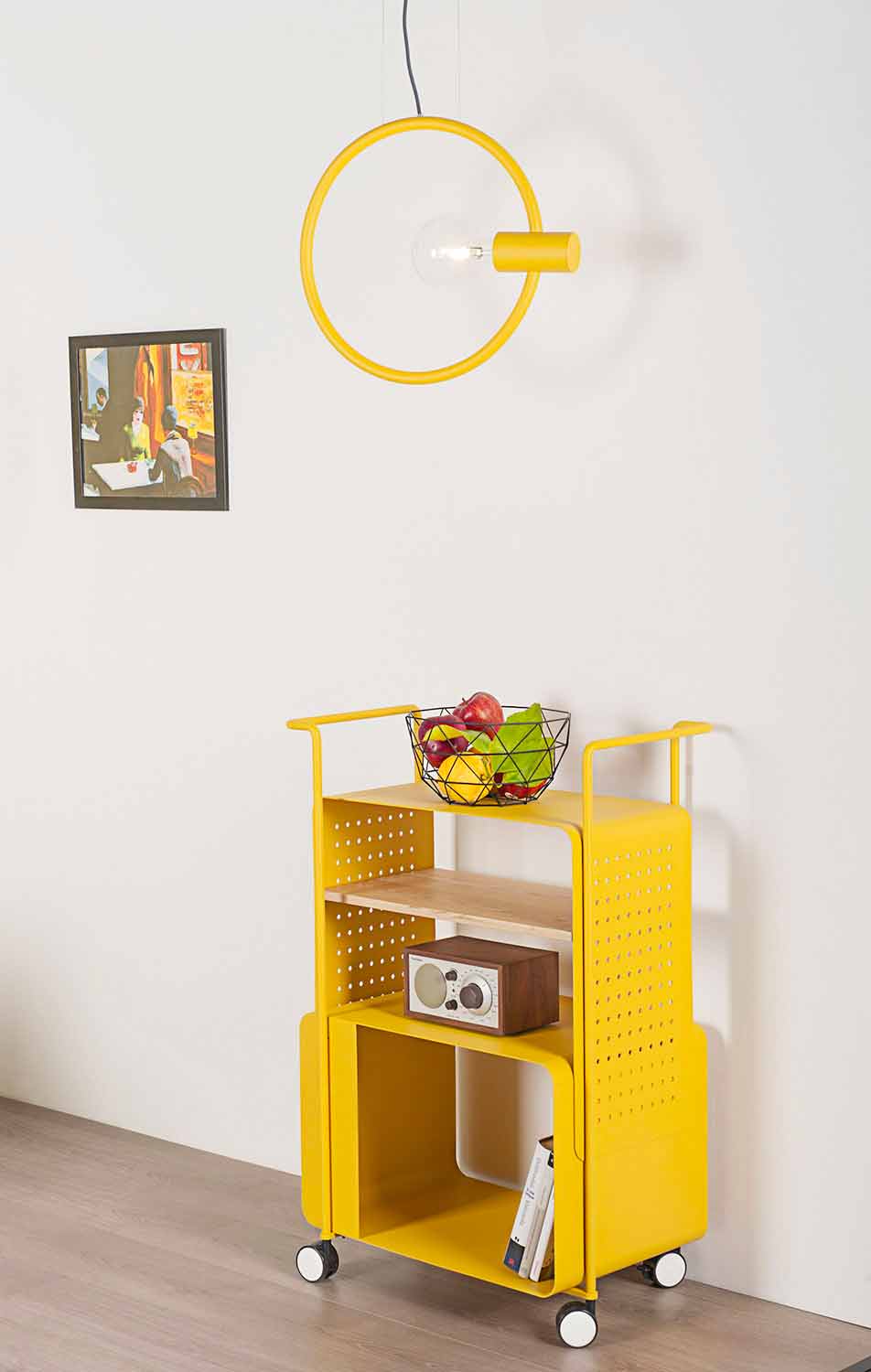 vagn representerar ett särskilt mångsidigt element eftersom den kan användas i olika situationer och miljöer som kök, vardagsrum eller till och med på kontoret. Tack vare sin unga och moderna design är den idealisk för miljöer med extravaganta och ovanliga möbler men också för mer minimalistiska stilar för att ge färg och personlighet. Helt