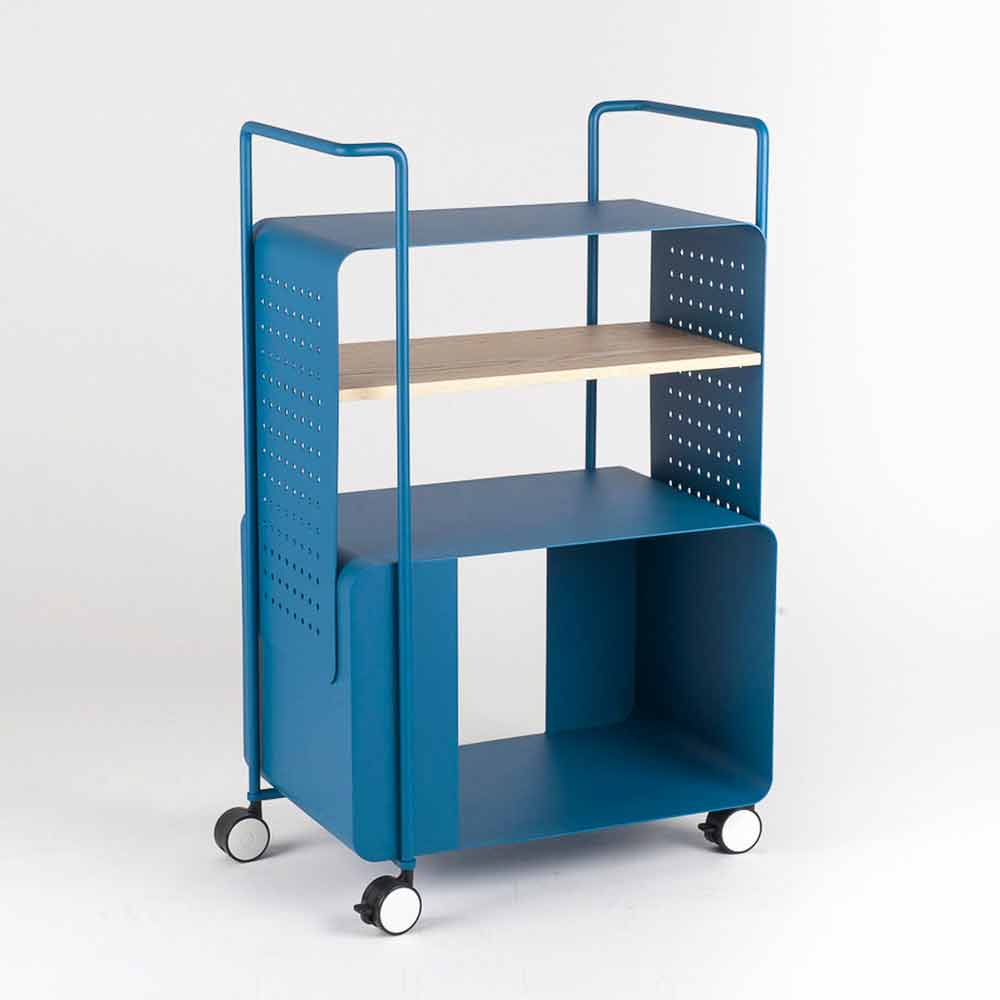 RAL-målat stål och innehåller fyra praktiska hyllor för att lagra de mest varierade föremålen, varav en är i