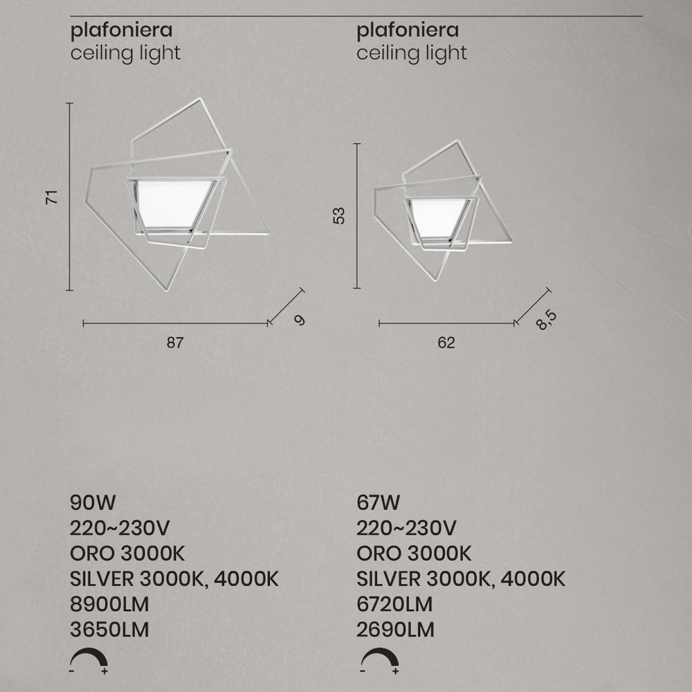 Tillgängliga ytbehandlingar: Tillgängliga storlekar:- L 87 x P 9 x H 71 cm (LED 90W 220-230V 3000K 8900LM);