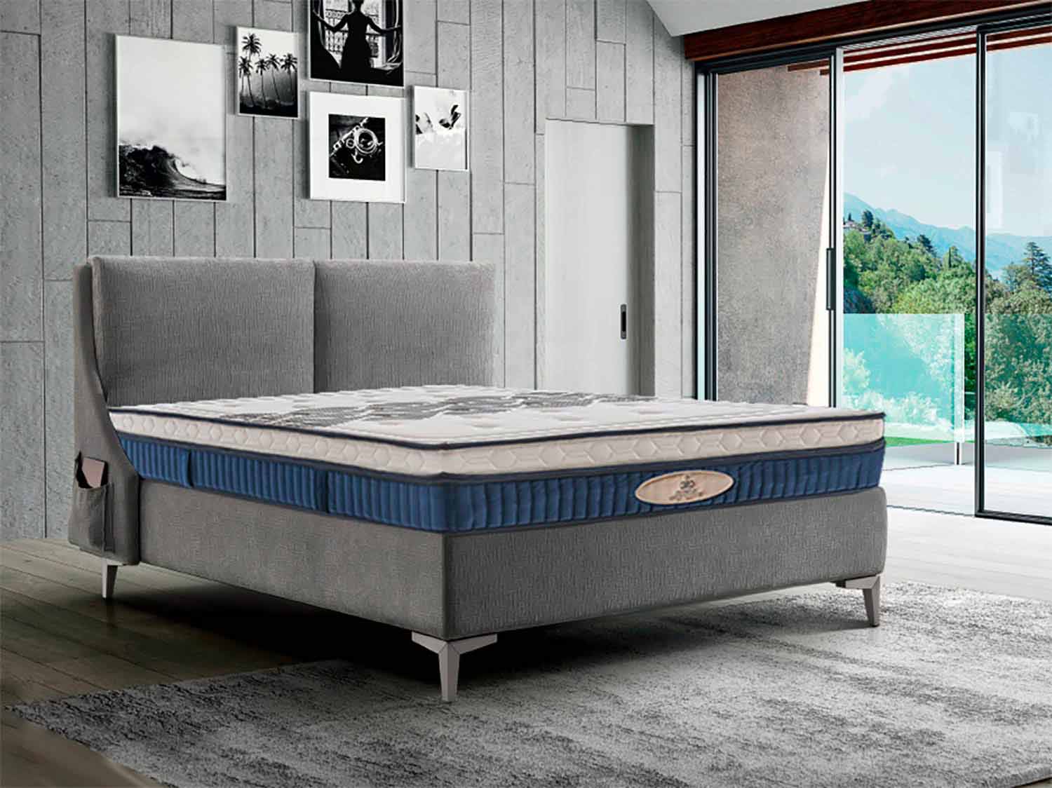 Dubbel madrass i Aloe Feel-minne 25 cm högt och med 800 fickfjädrar, avtagbara och med vadderat täckning, handgjorda i Italien.