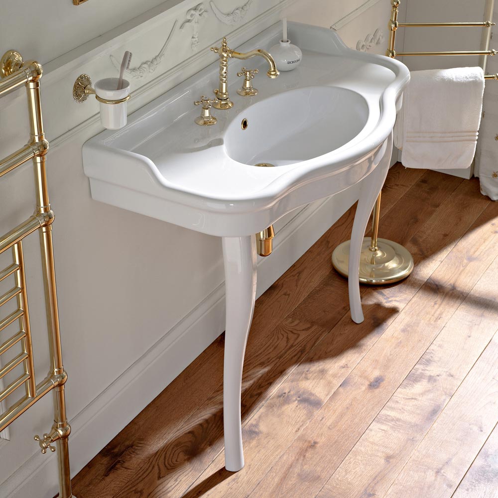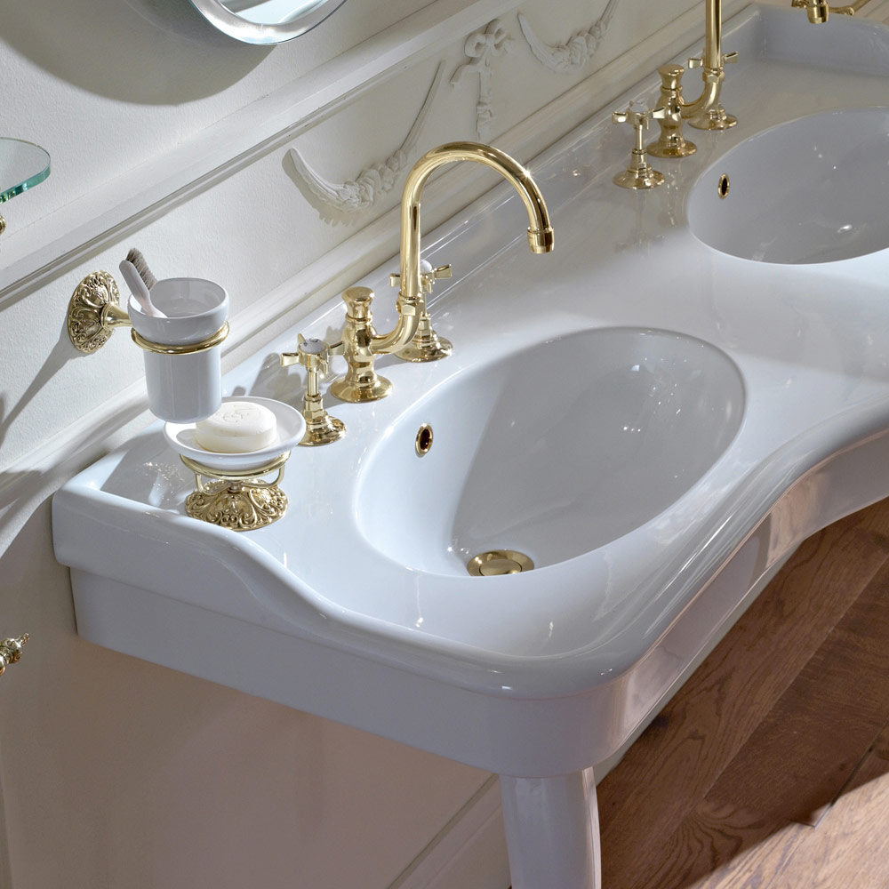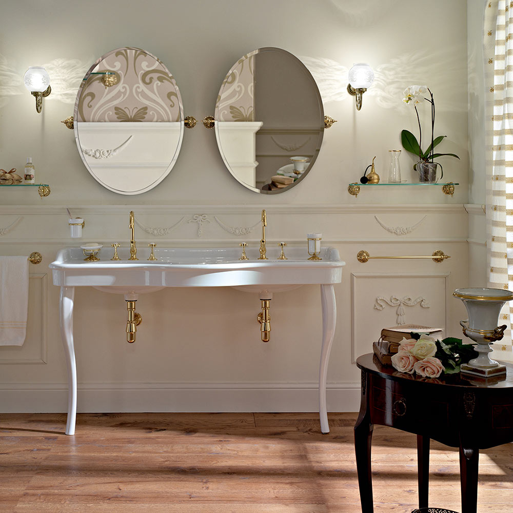 Vintage badrumskonsolbord med vit keramisk dubbel handfat Paulina, tillverkad i Italien.