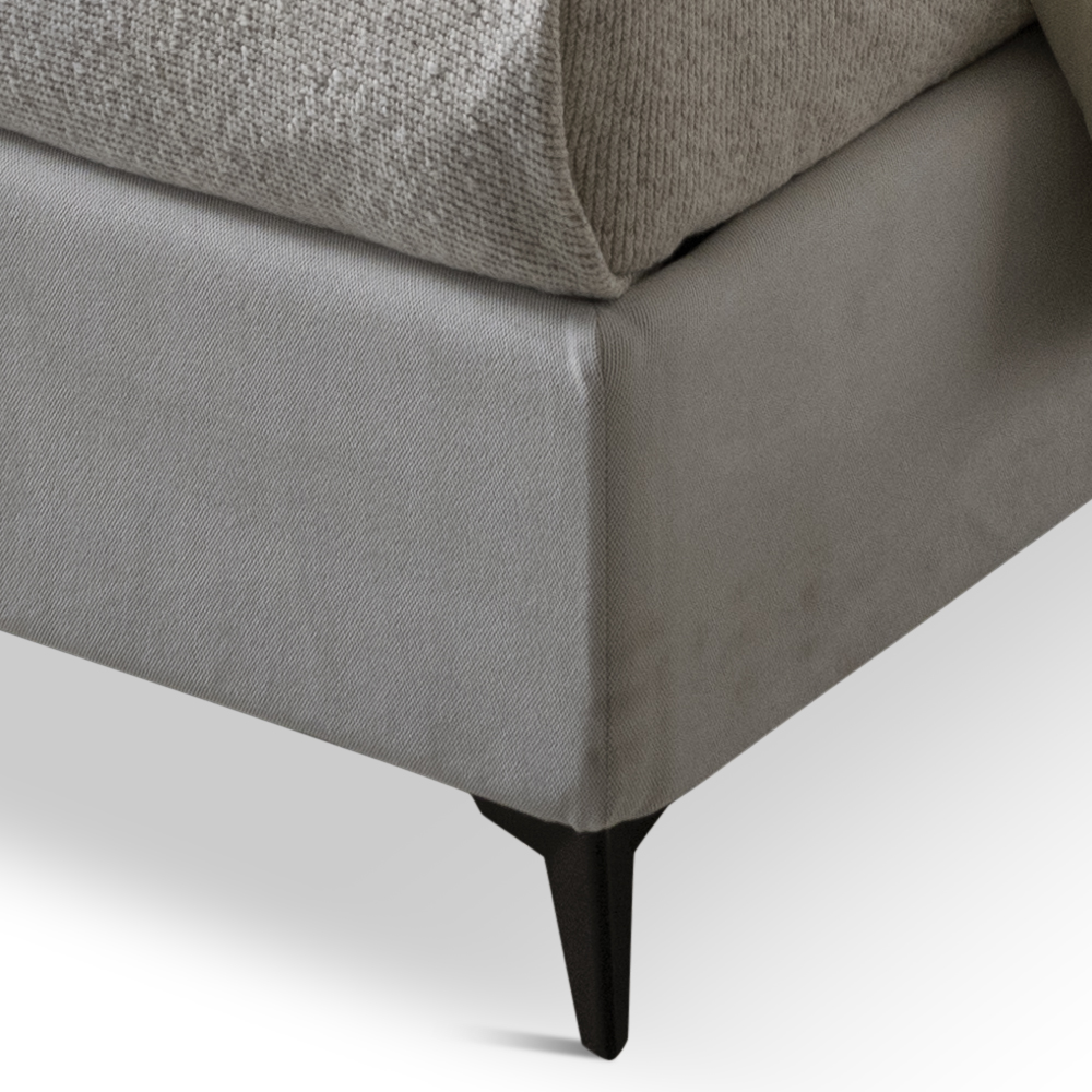 Dubbelsäng klädd i vattenavvisande och fläckavvisande tyg med dynamisk bas , förvaringsbox och antracitfinish metallfötter (höjd 13,5 cm).