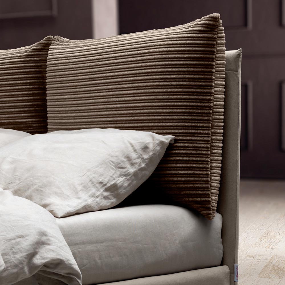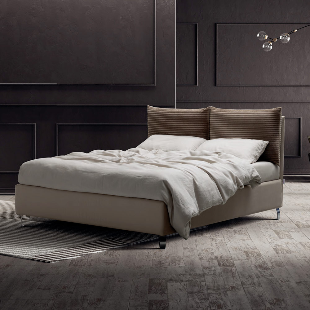förvaringsbox, metallfötter med polerad stålfinish (höjd 12 cm) och sänggavel gjord med två mjuka kuddar i miljövänligt och grönt tyg, till skillnad från sängen i vattenavvisande tyg. Kuddarna är fästa på ramen med praktiska självhäftande kardborrinsatser som möjliggör bekväm och enkel borttagning.