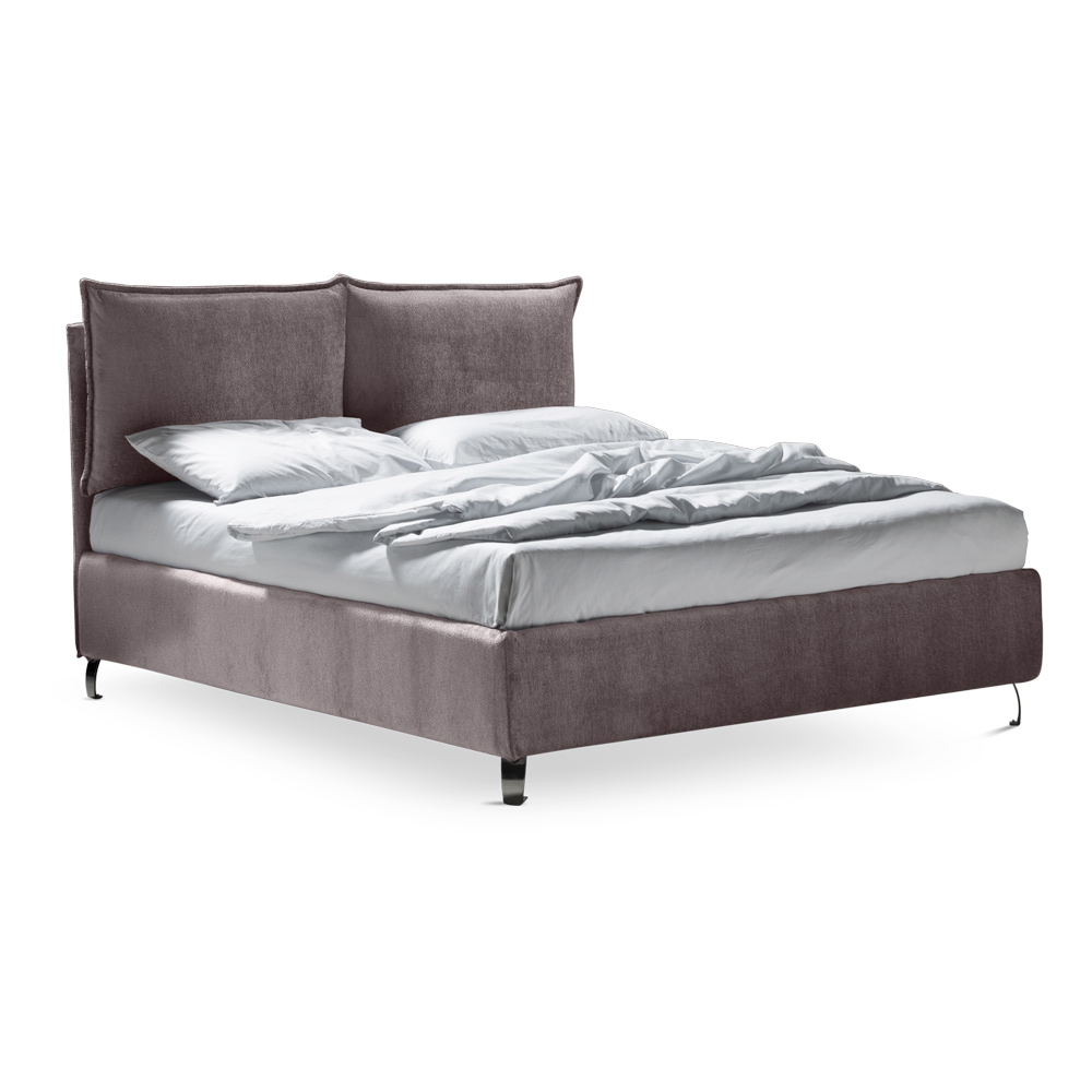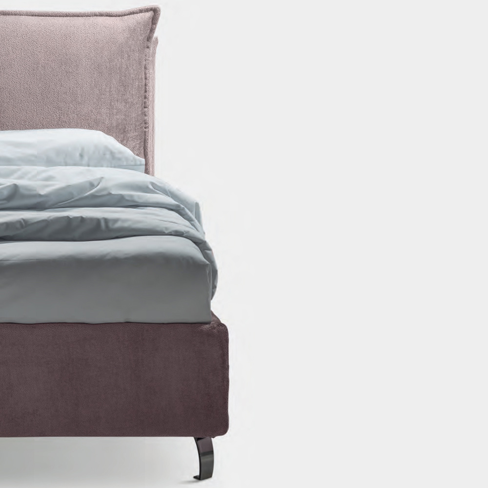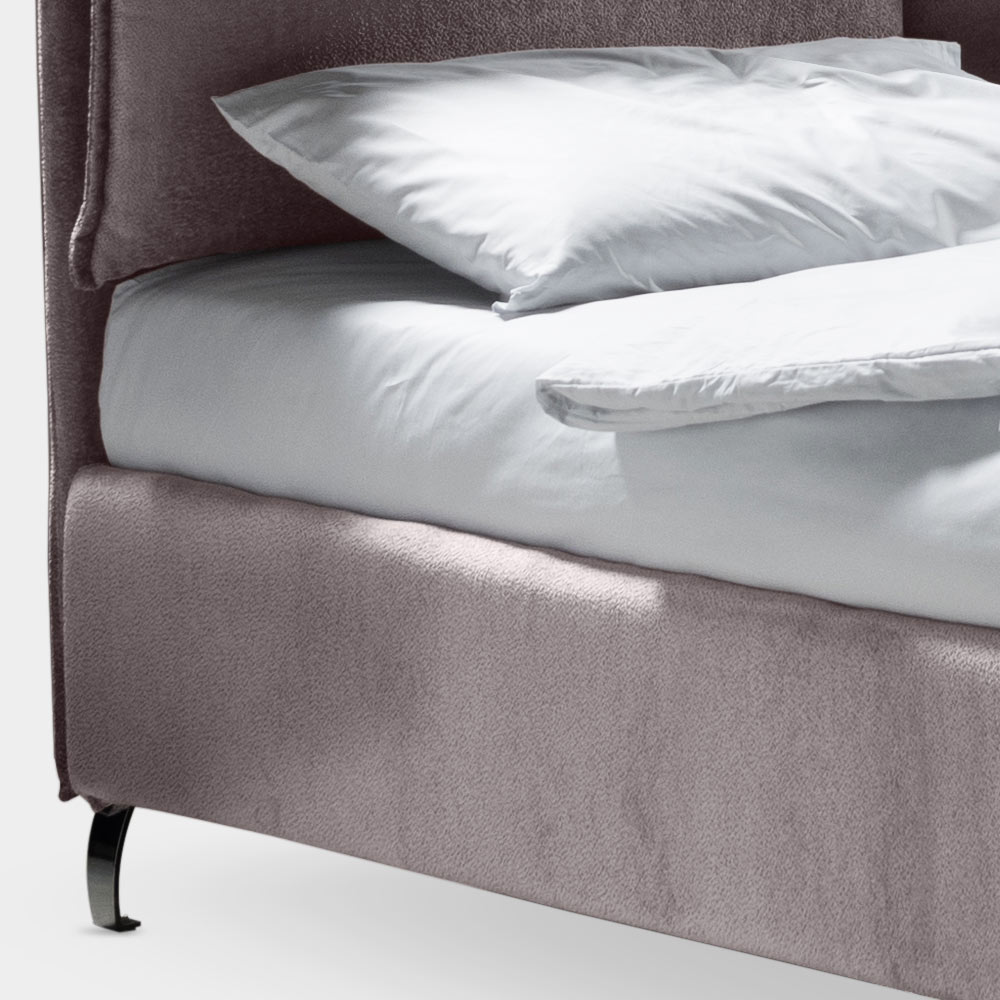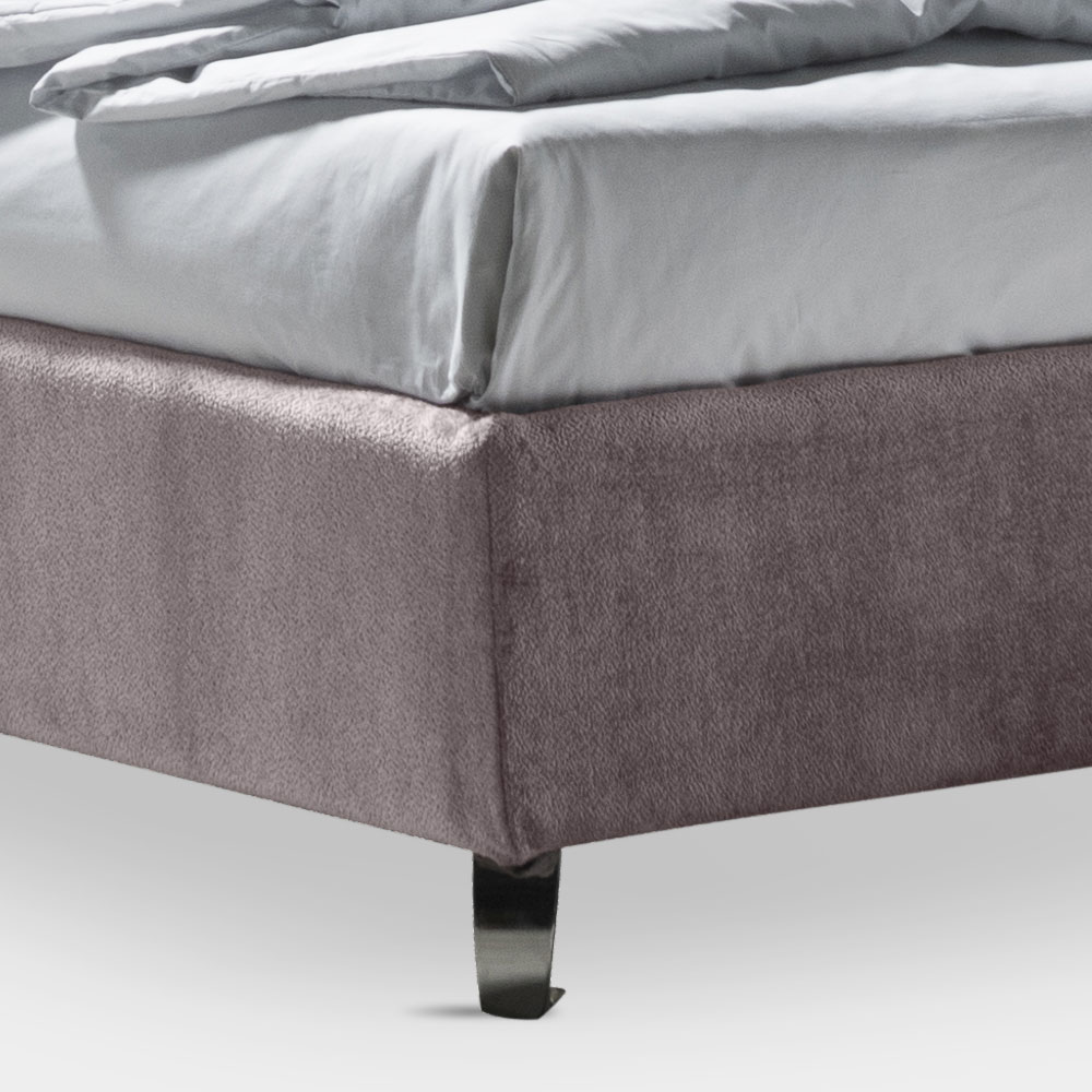 förvaringsbox, metallfötter med polerad stålfinish (höjd 12 cm) och sänggavel i brandsäkert tyg, den är gjord med två mjuka kuddar med en omkretsvolang fixerad med praktiska självhäftande kardborrinsatser som möjliggör bekväm och enkel borttagning .
