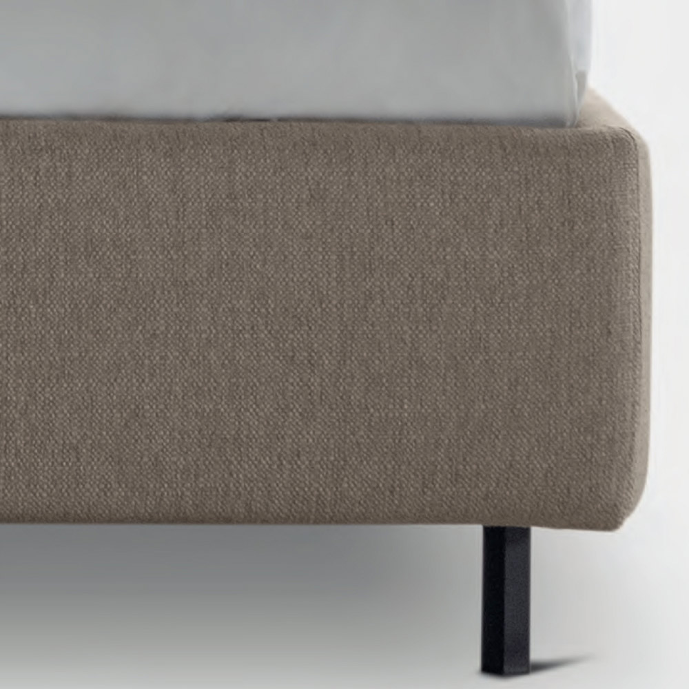 - förvaringslådans bottenpaneler, certifierade i klass E1 med mycket låg formaldehydhalt, är gjorda av 10,5 mm tjockt laminat, i grått för att matcha sängramens invändiga tyg, för att möjliggöra enkel rengöring och hygien med en vanlig fuktig trasa för damm.