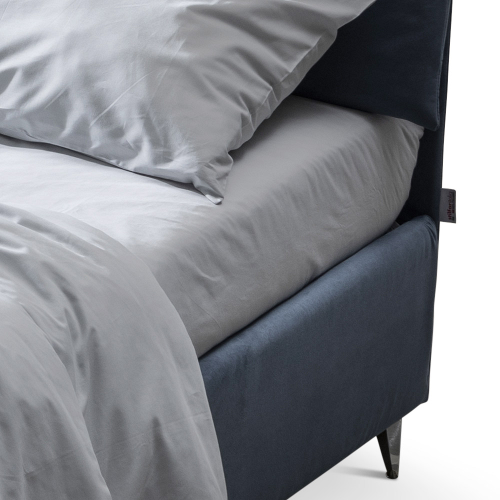 - förvaringslådans bottenpaneler, certifierade i klass E1 med mycket låg formaldehydhalt, är gjorda av 10,5 mm tjockt laminat, i grått för att matcha sängramens invändiga tyg, för att möjliggöra enkel rengöring och hygien med en vanlig fuktig trasa för damm.