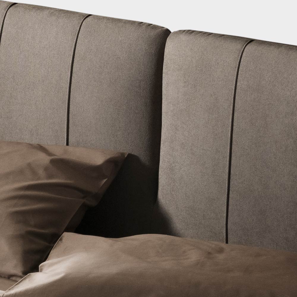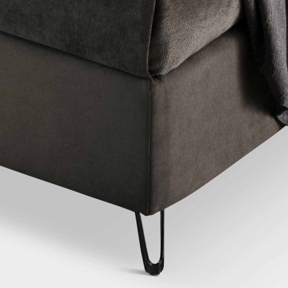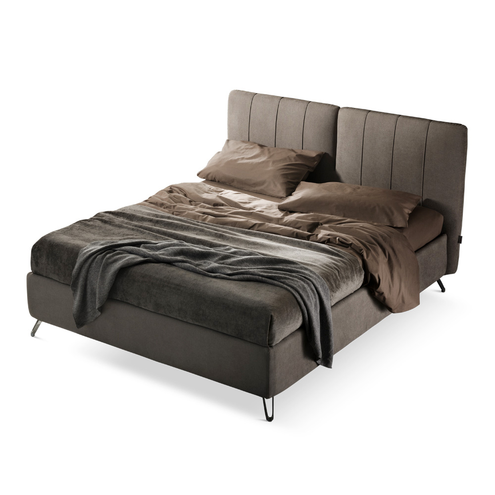 förvaringsbox, metallfötter med polerad stålfinish (höjd 12,3 cm) och sänggavel erhållen tack vare en speciell stoppning, gjord med vertikala sladdprofiler, som ger den en original estetisk effekt i vattenavvisande och fläckbeständig tyg.