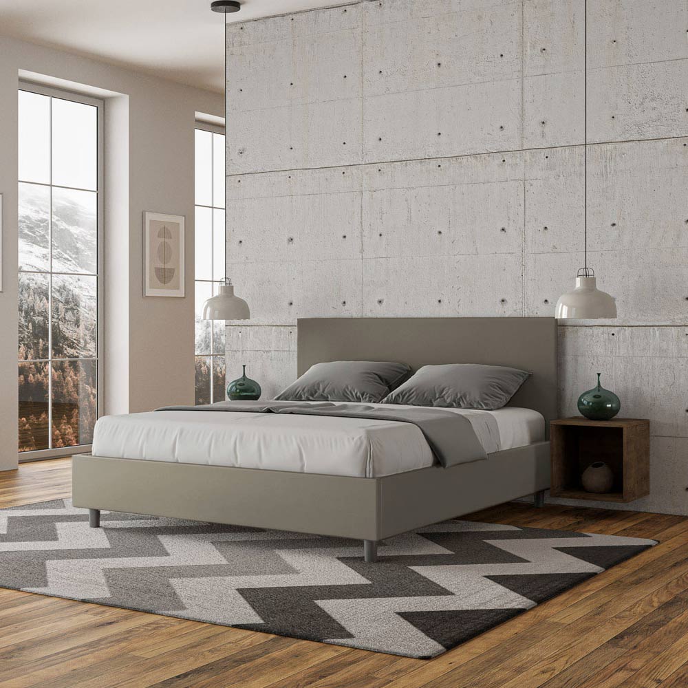 160x200 cm stoppad dubbelsäng klädd i konstläder, Tillverkad i Italien
