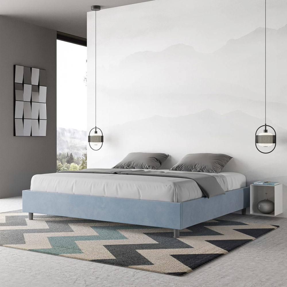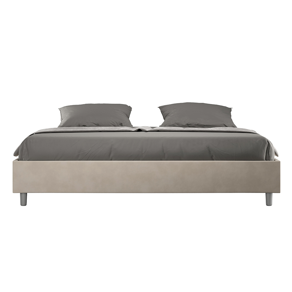 King size-säng 190x200 cm stoppad med melaminpaneler och klädd i mikrofiber , helt tillverkad i Italien. Denna king size-säng utmärker sig med sin rena, minimalistiska design . Dess diskreta estetik och mångsidighet gör den enkel att integrera i alla miljöer. En av dess utmärkande egenskaper är avsaknaden av en traditionell huvudgavel , vilket gör den idealisk för placering i unika utrymmen, till exempel under ett fönster, på vinden eller nära en dekorativ vägg, utan att skymma utsikten eller uppnå önskad effekt.