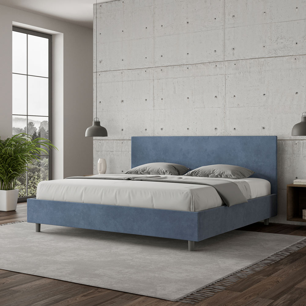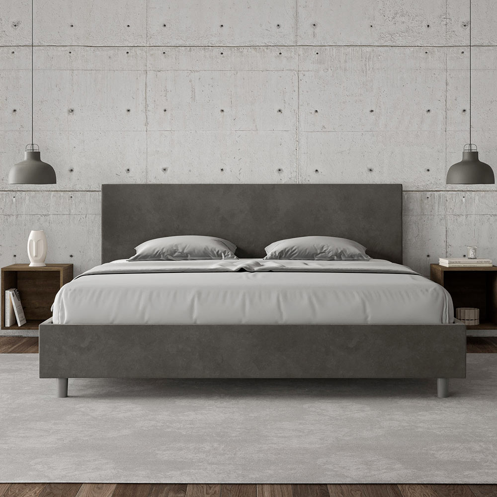 King size-säng 190x200 cm vadderad och klädd i mikrofiber, Tillverkad i Italien