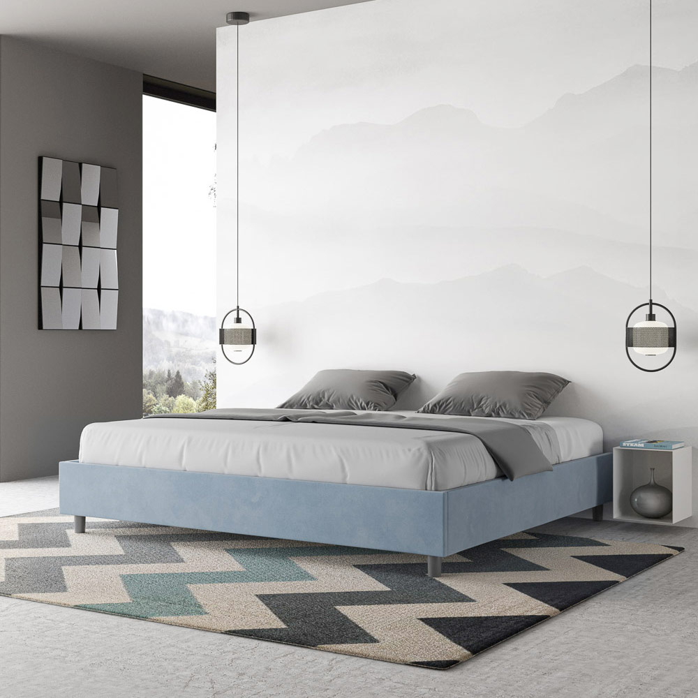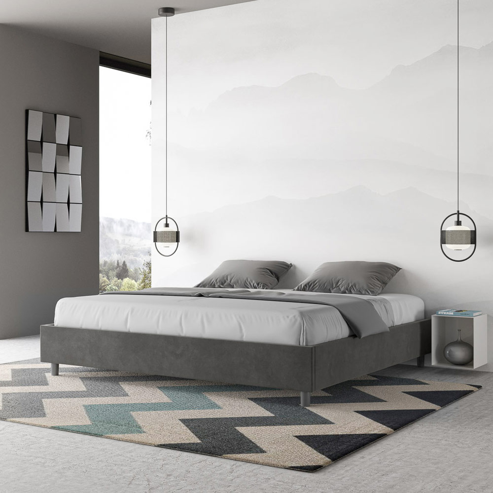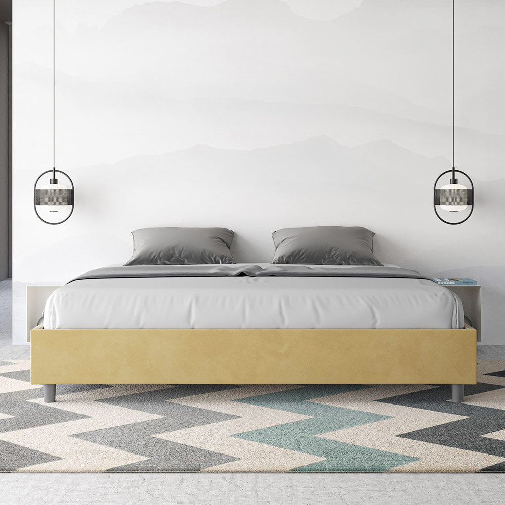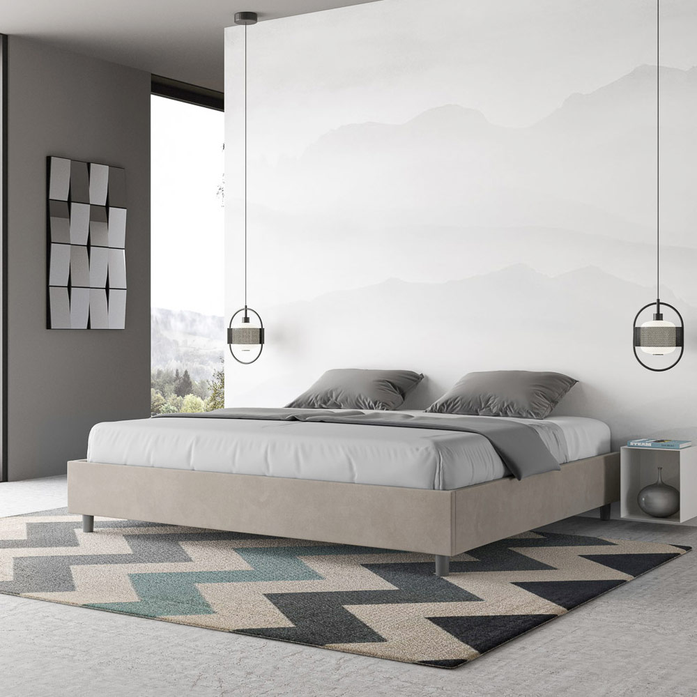 Super king size-säng 200x200 cm stoppad med melaminpaneler och klädd i mikrofiber , helt tillverkad i Italien. Denna superkingsize-säng utmärker sig med sin rena, minimalistiska design . Dess diskreta estetik och mångsidighet gör den enkel att integrera i alla miljöer. En av dess utmärkande egenskaper är avsaknaden av en traditionell huvudgavel , vilket gör den idealisk för placering i unika utrymmen, till exempel under ett fönster, på vinden eller nära en dekorativ vägg, utan att skymma utsikten eller uppnå önskad effekt.