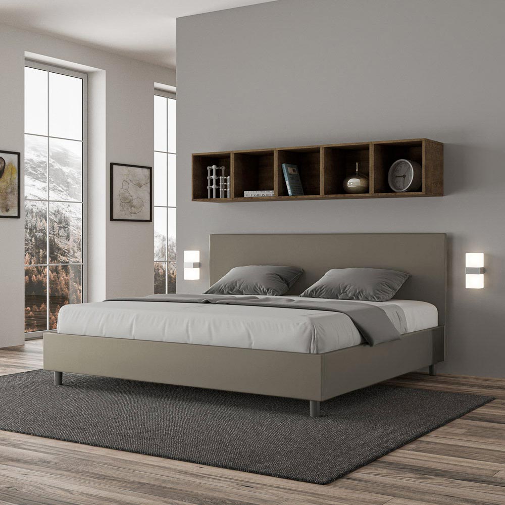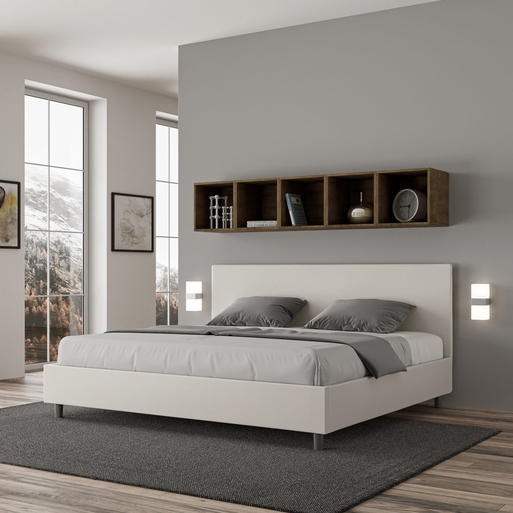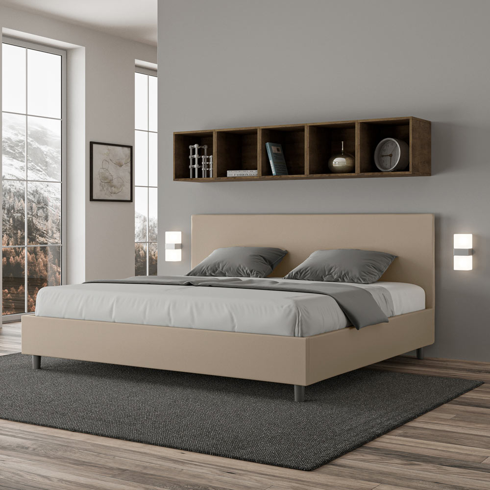 Super king size-säng 200x200 cm stoppad och klädd i konstläder, Tillverkad i Italien