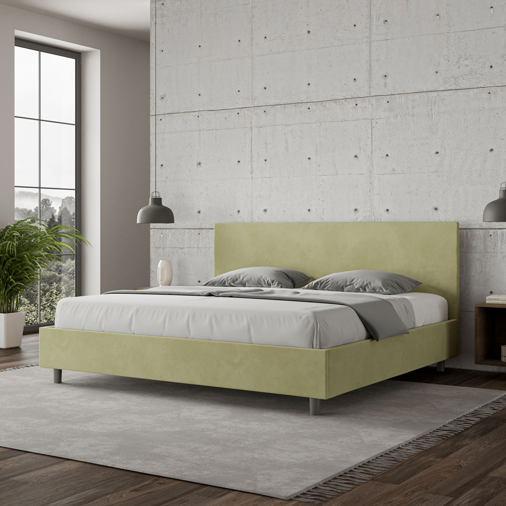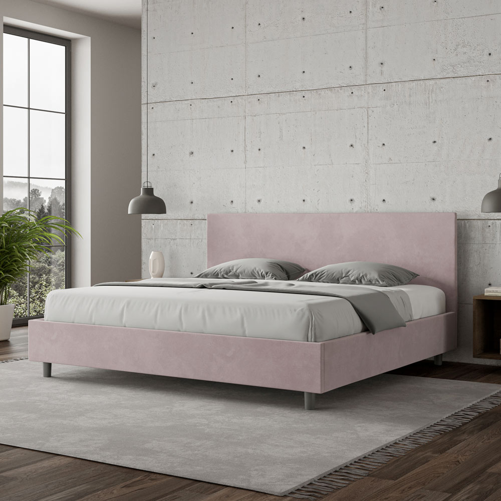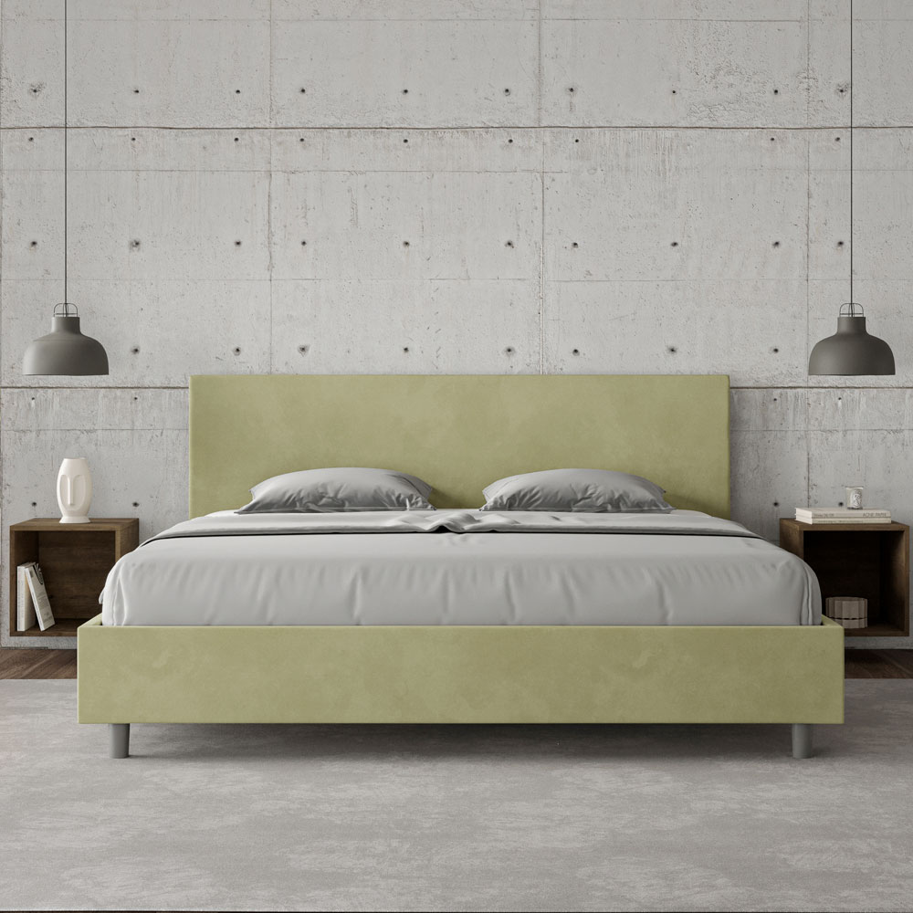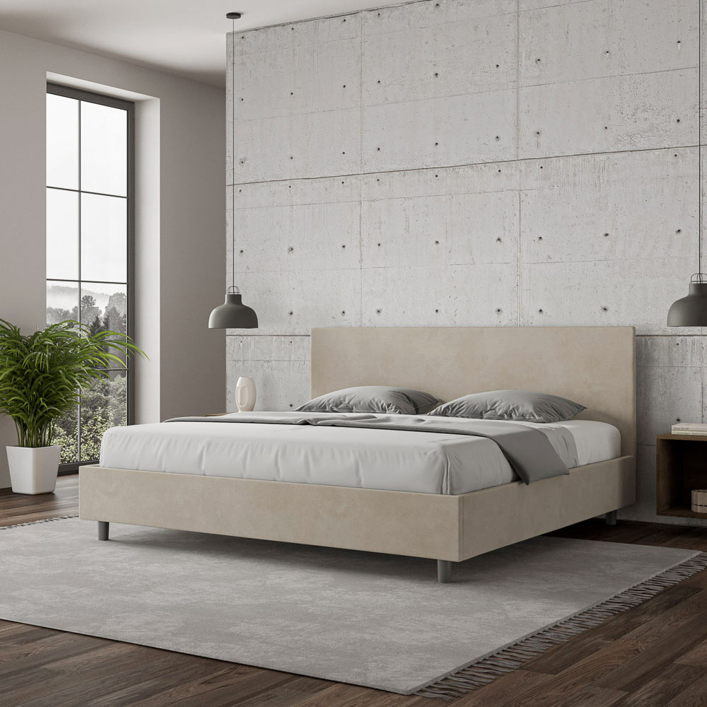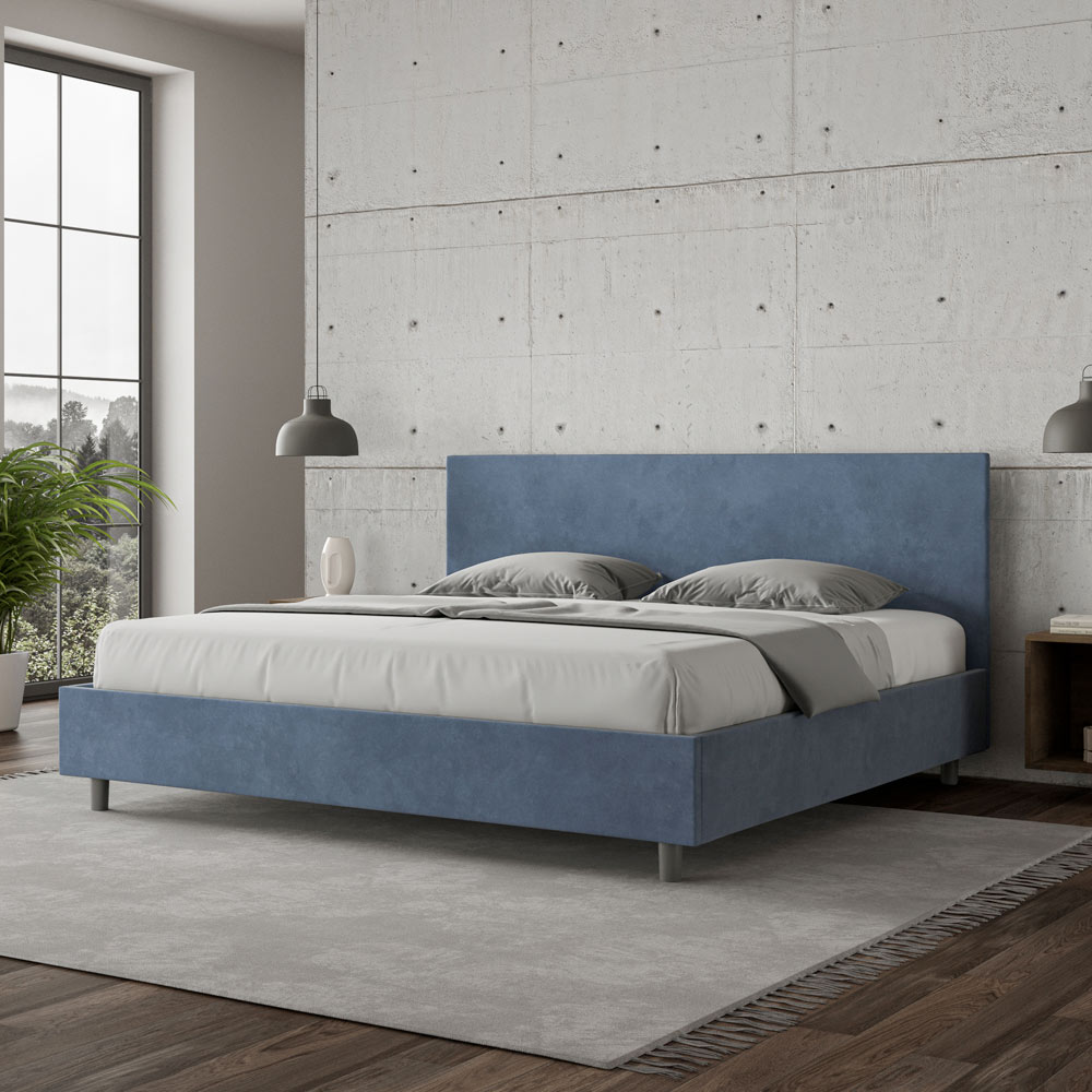 Super king size-säng 200x200 cm vadderad och klädd i mikrofiber, Tillverkad i Italien