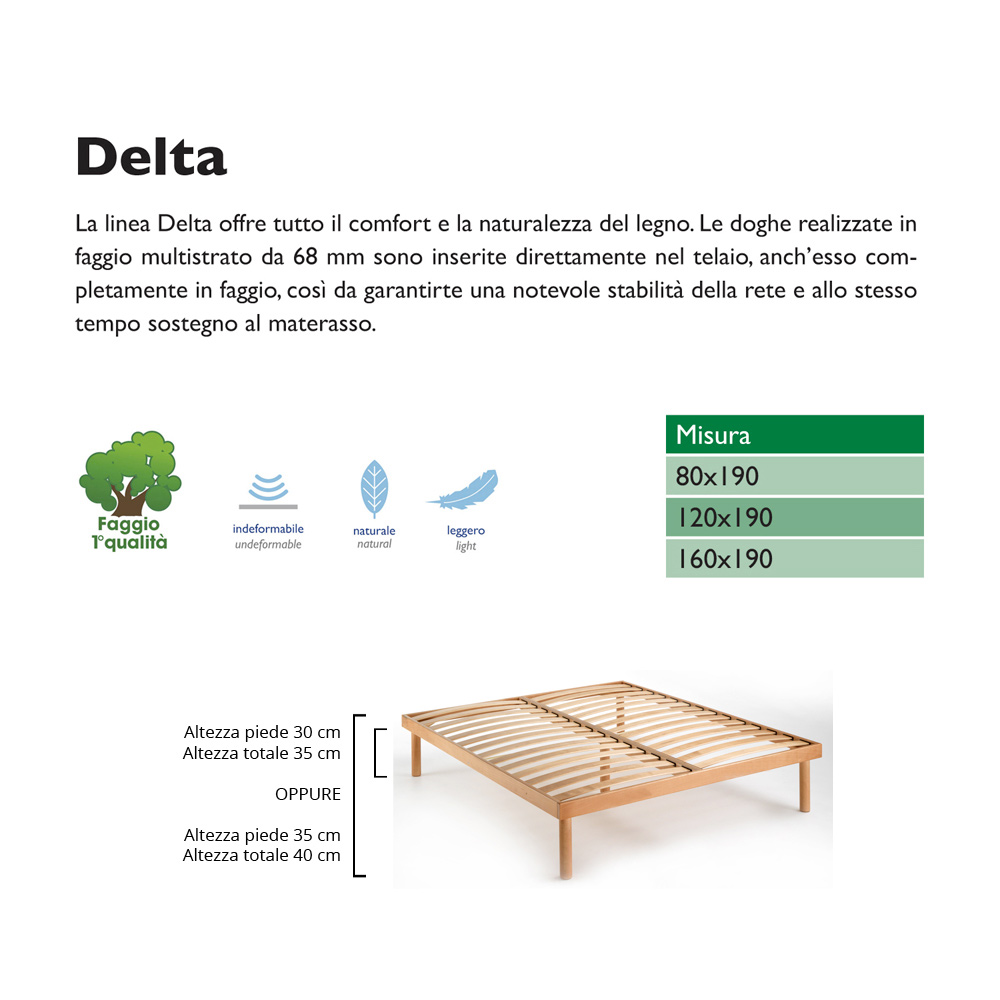 68 mm flerskiktsbok sätts in direkt i ramen, som också är helt av bok, för att garantera en avsevärd stabilitet i basen och samtidigt stödja madrassen.