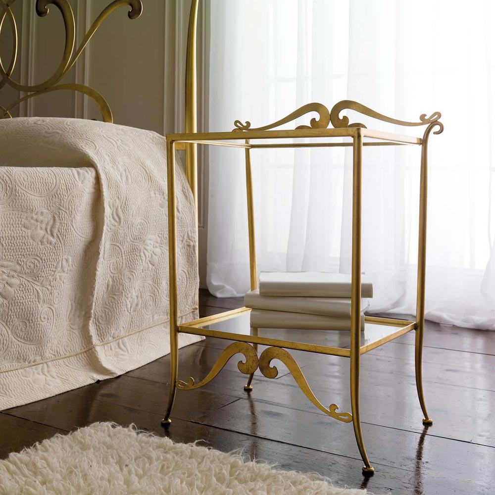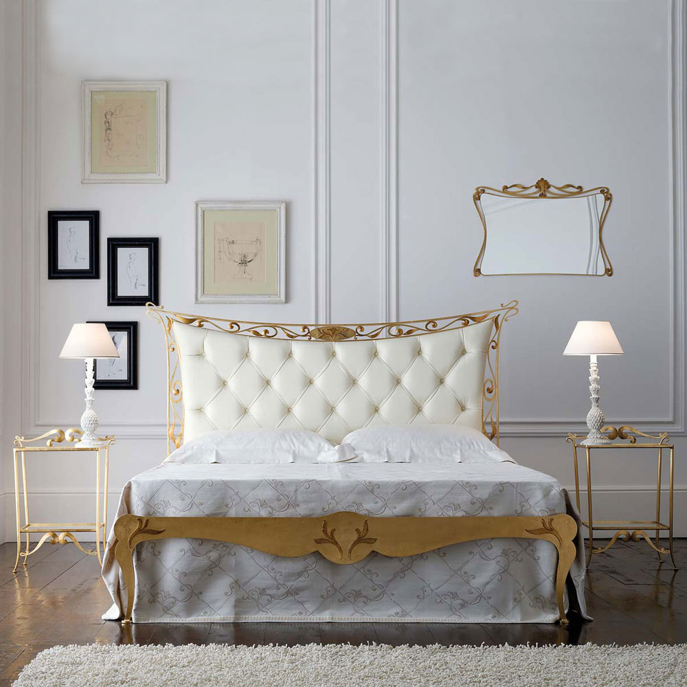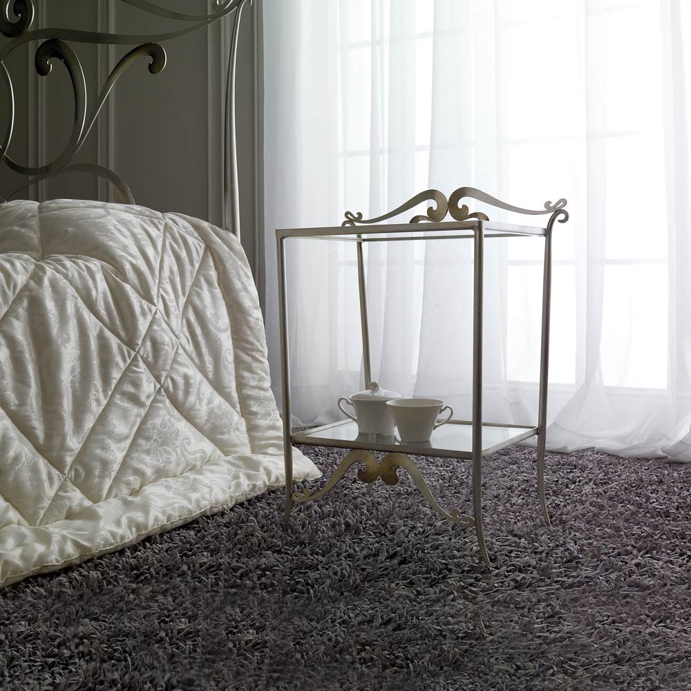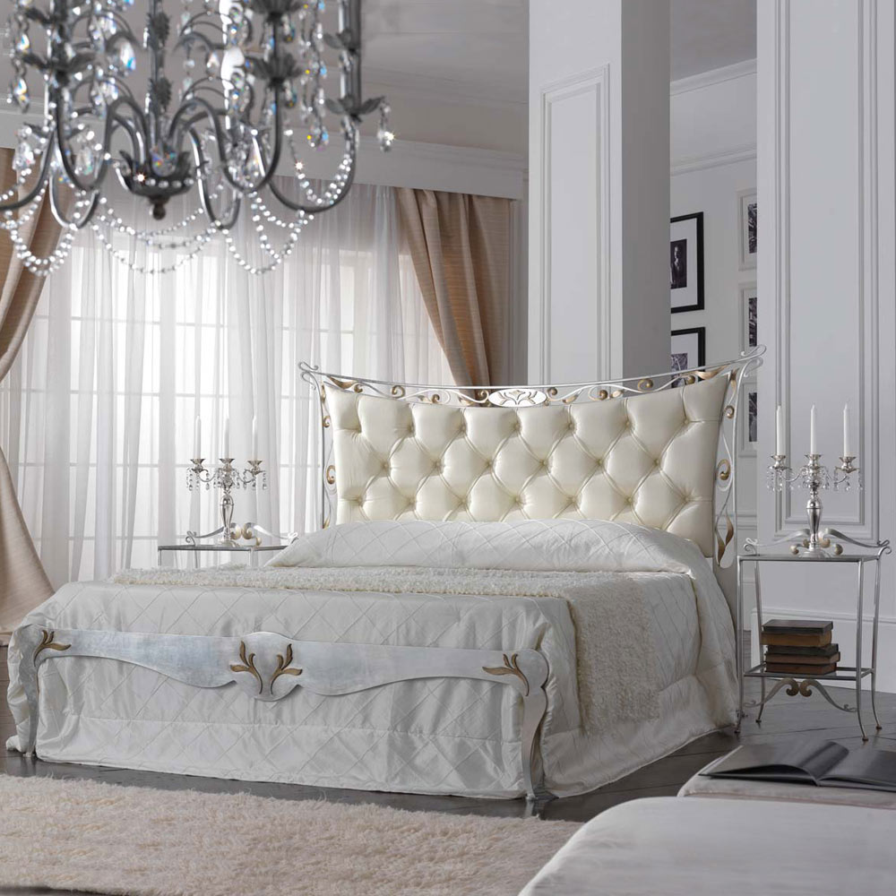 Dubbelsäng med sänggavel i järn och 2 sängbord Made in Italy