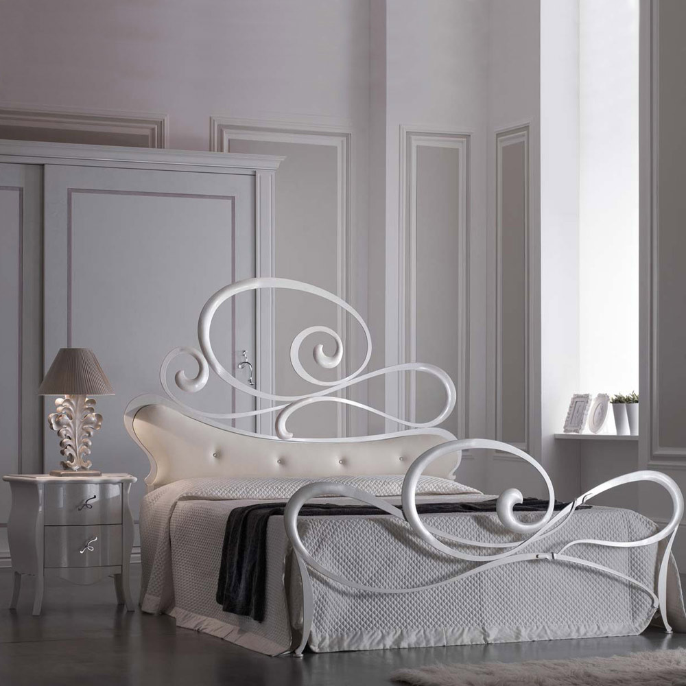 Dubbelsäng med sänggavel i järn och 2 sängbord Made in Italy