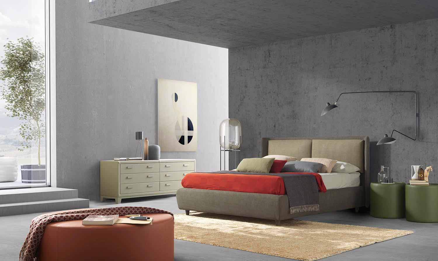 Struktur i granträblockskiva med naturlig invändig finish h.29 cm, klädd i polyuretanskum utan klorfluorkolväten enligt UNI-standarder och fodrad med ljusstabil velfodera. Strukturens botten är i träagglomerat med syntetisk invändig finish med graneffekt, de senare stöds av PE och rörformade profiler. Lamellbotten med metallstruktur, böjd ram med 50x37 mm profil målad med epoxipulver. Normal ortopedisk lamellbotten, böjda bokplywood-lameller. Vasfötter h 4 cm.