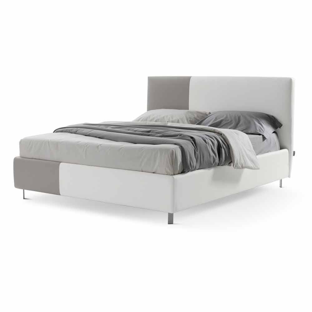 Dubbelsäng med lyxig behållare i tvåfärgat grått och vitt ekoläder, handgjord i Italien.