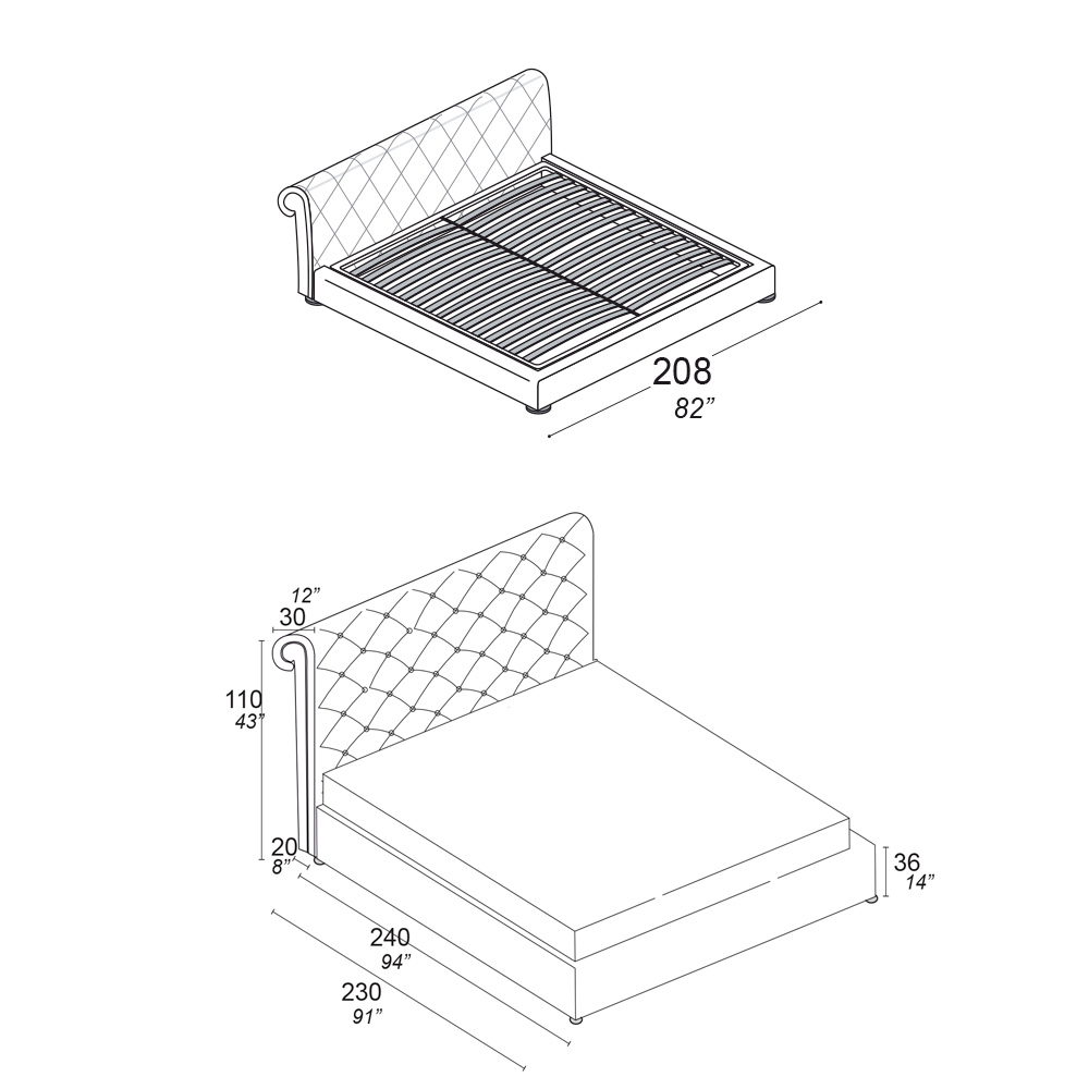 - längd: 208 cm x djup: 240 cm x höjd: 110 cm - lämplig för en 180x200 cm madrass