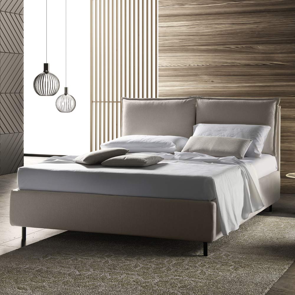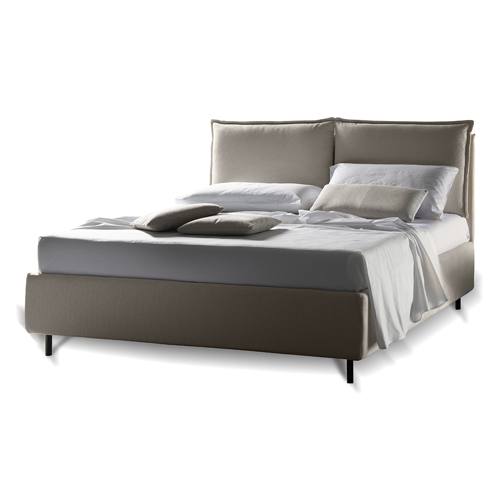 modern idé om komfort som uppstår ur önskan att skapa en inredningslösning som är lika funktionell som elegant och modern. Enkelheten hos sängramen och metallfötterna tillsammans med sänggavelns originalitet ger produktens estetik en