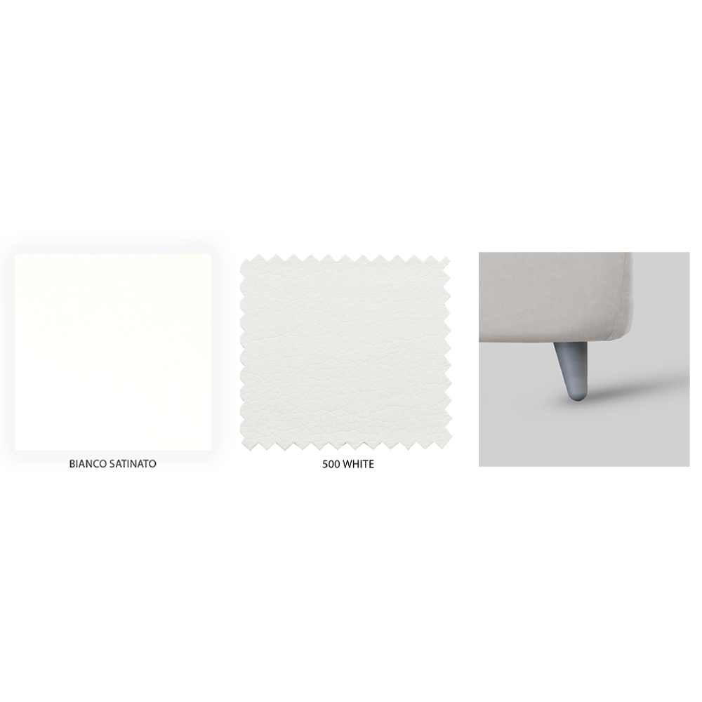 Tillgängliga ytbehandlingar:- H 11 fot modell: satinvit sänggavel, vit eco-läder sängram och grå polypropenfötter