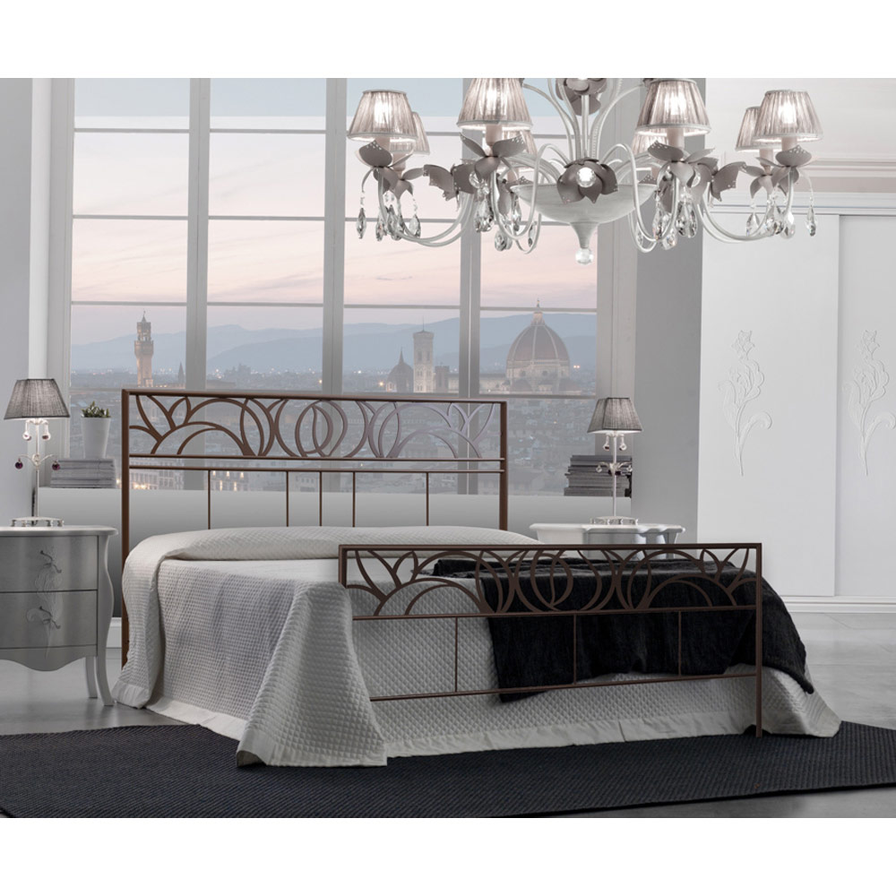 Dubbelsäng med koordinerad sänggavel och fotgavel i järn Tillverkad i Italien